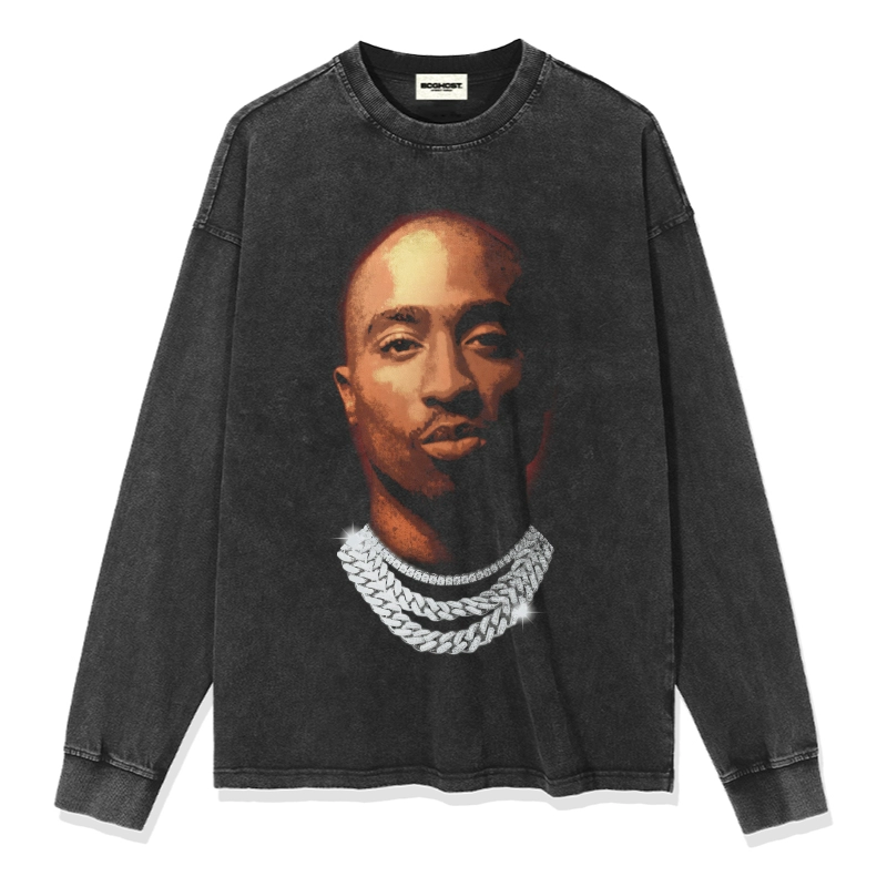 | nameOriginal | American retro washed distressed long-sleeved T-shirt high street tupac hip-hop rap hip-hop loose versatile bottoming shirt trendy |
