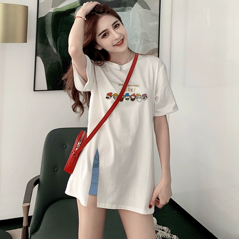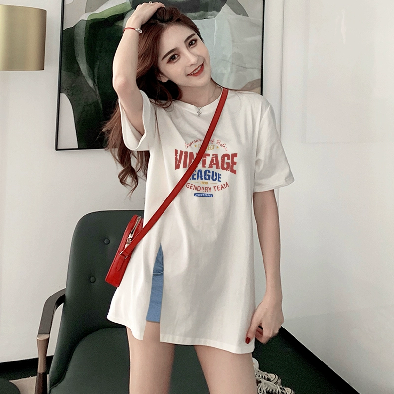 | nameOriginal | American retro white short-sleeved T-shirt for women summer new pure cotton loose large size mid-length slit top and skirt |