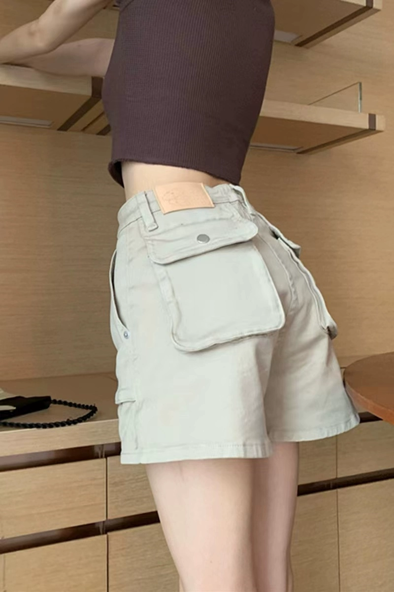 | nameOriginal | American retro workwear denim shorts for women in summer, loose design, high-waisted, straight-leg slimming A-line wide-leg hot pants |