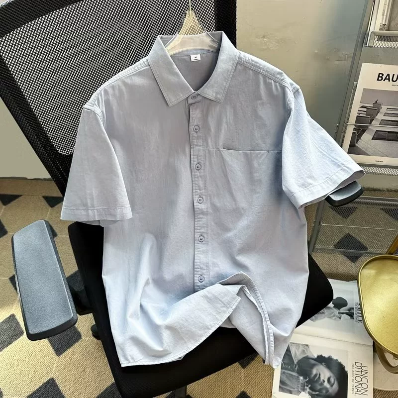 American shirt men’s short -sleeved high -end sense of loose retiring pure cotton trendy casual shirt port style Japanese work jacket