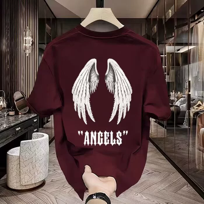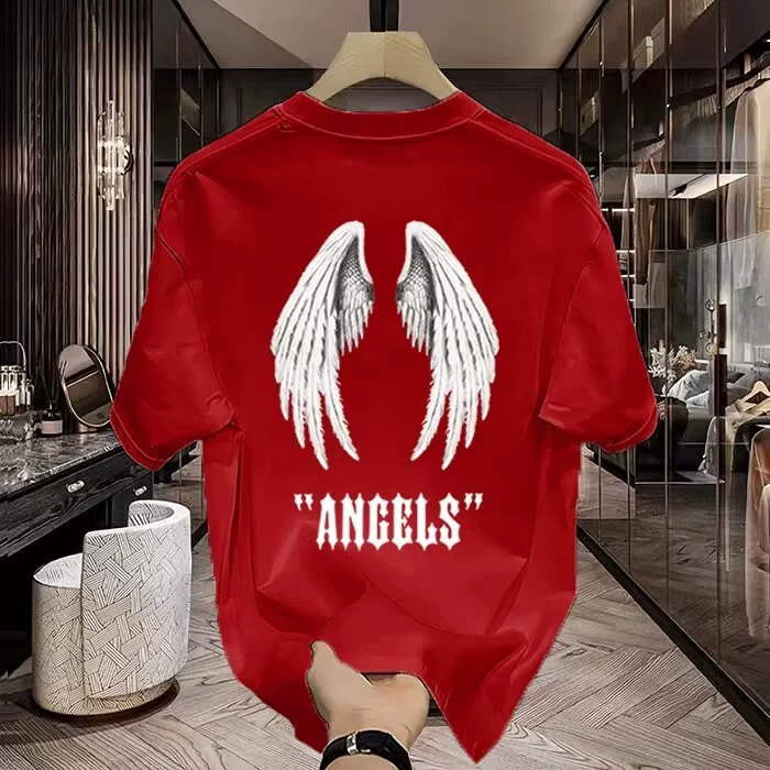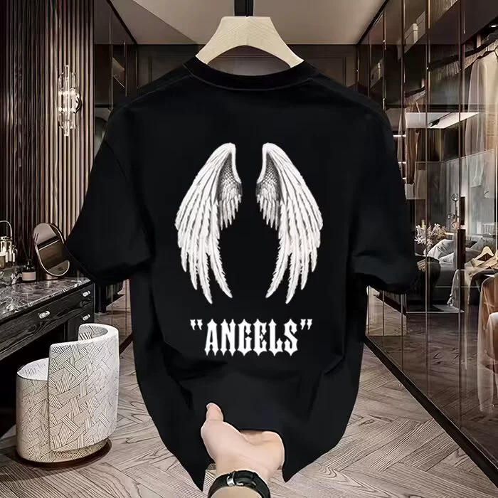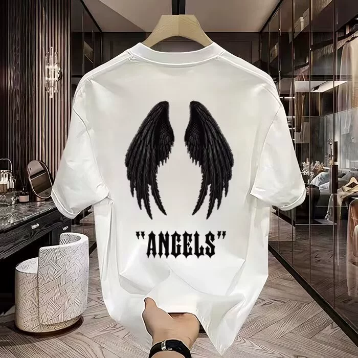 American short-sleeved T-shirts for men and women, retro letters, creative trendy brand wings, printed loose couple wear, summer half-sleeves
