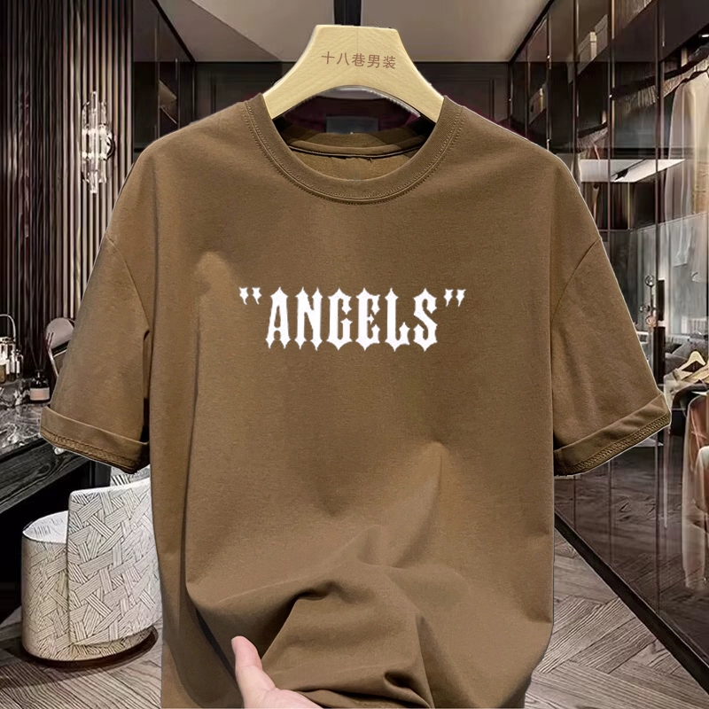 American short -sleeved T -shirt men and women retro letters creative trend brand wings printed loose couple dress summer half -sleeve