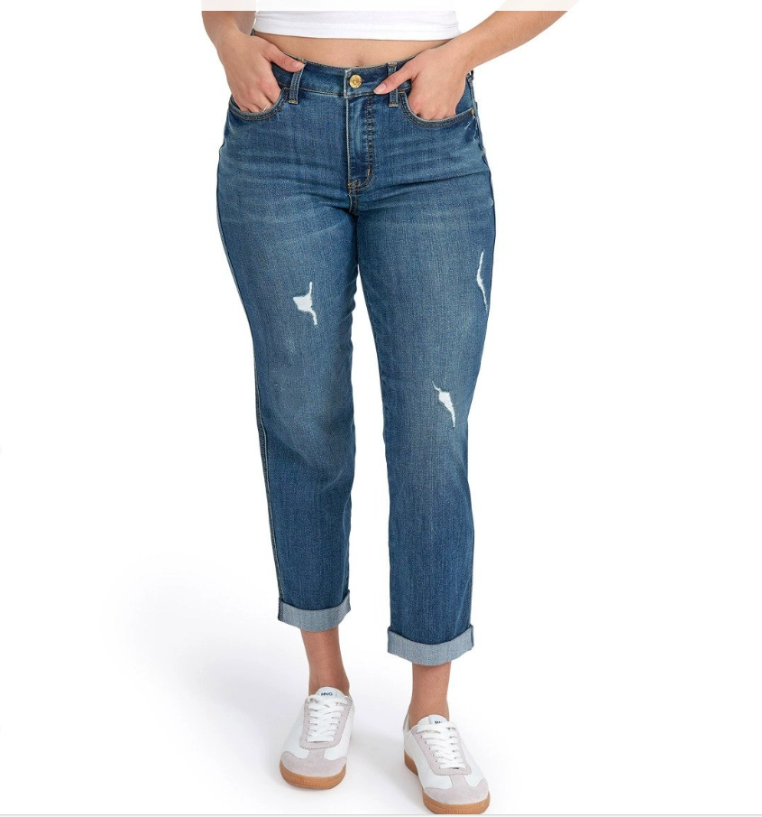 | nameOriginal | American single polished white high waisted hem boyfriend jeans |