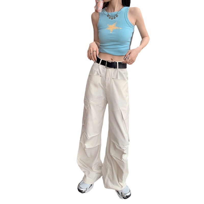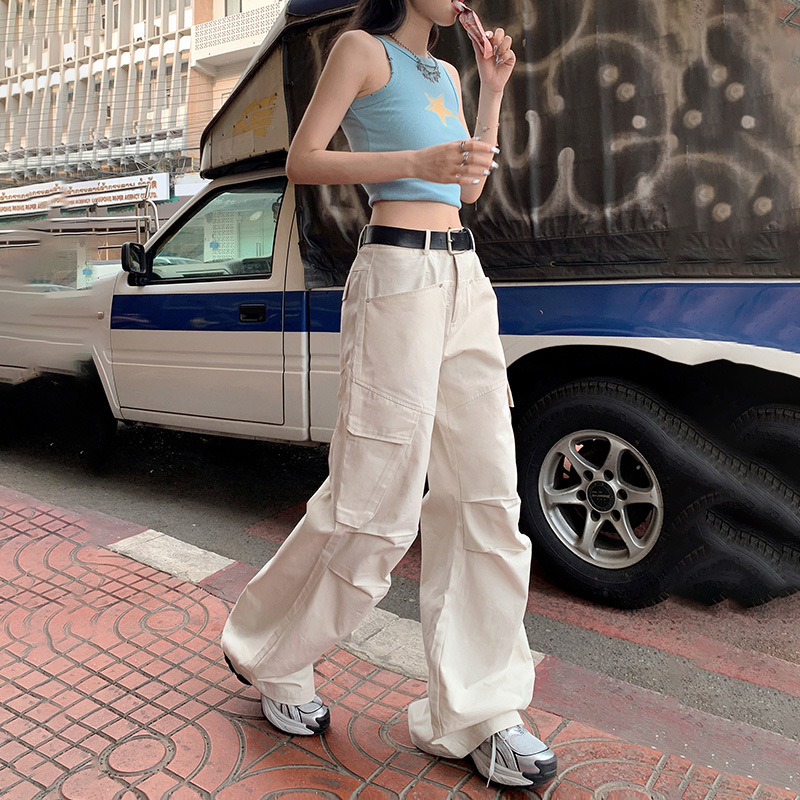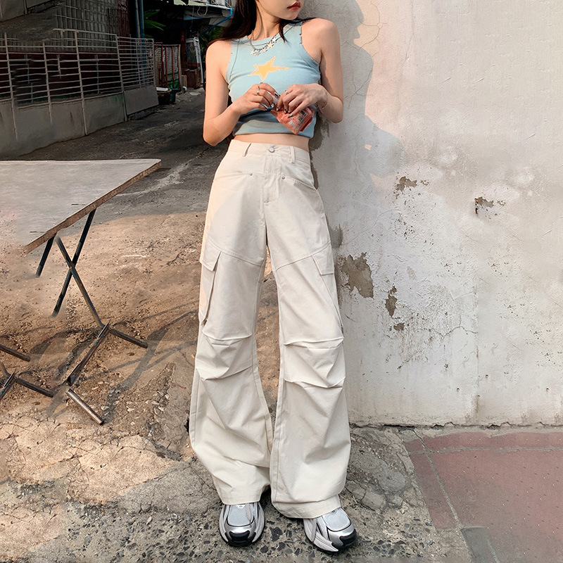 American straight overalls for women 2024 spring and summer new design sense niche high waist loose wide leg casual trousers
