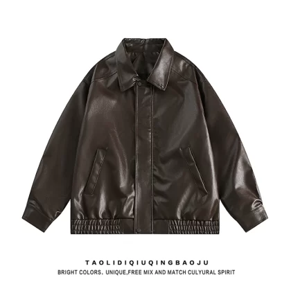 | nameOriginal | American Street Maillard Leather Jacket Women's Retro Premium Loose Couple Lapel PU Leather Jacket |
