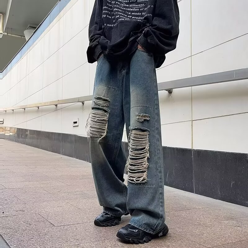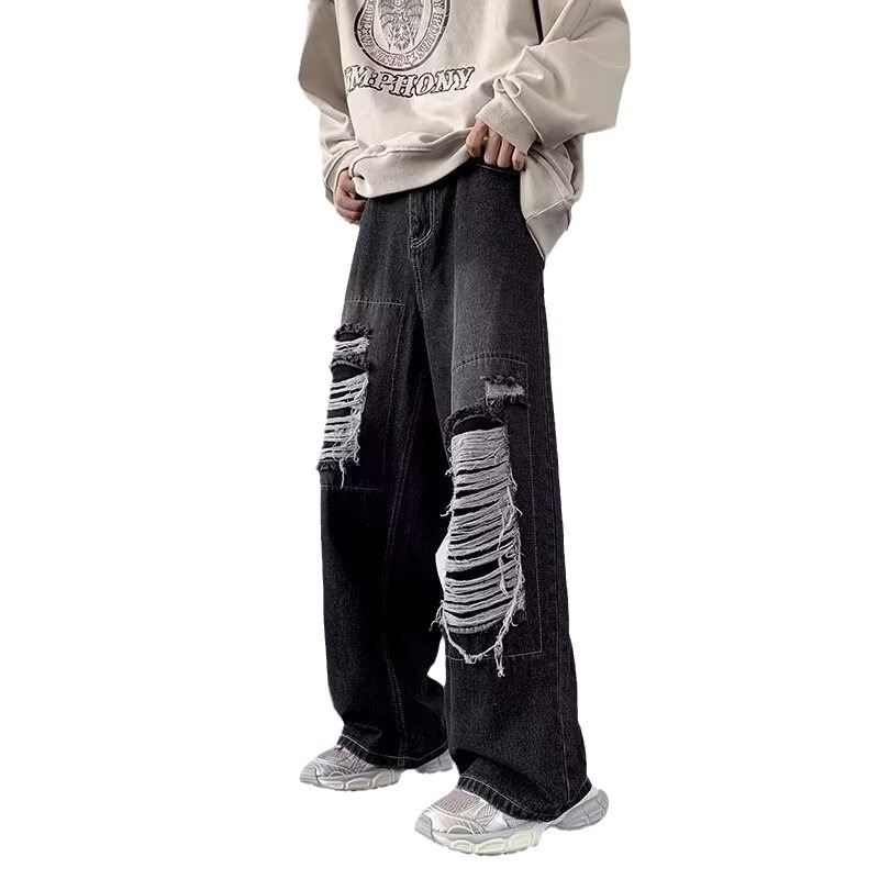 | nameOriginal | American street patch ripped design sense niche jeans men's and women's ins fashion brand high street loose straight pants |