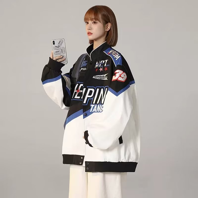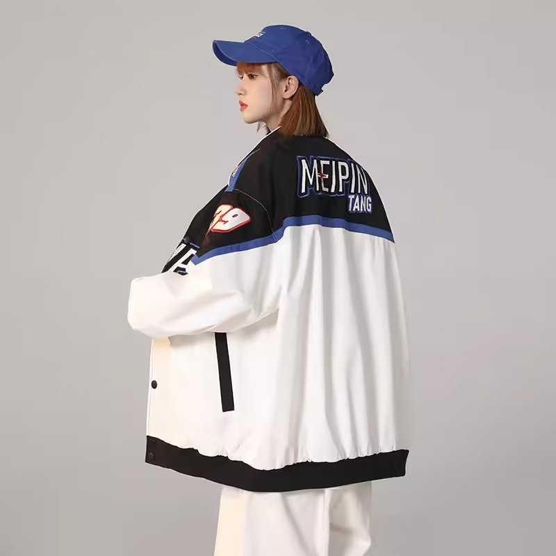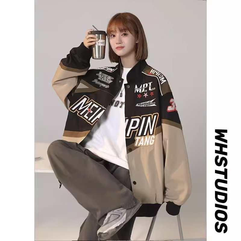 | nameOriginal | American Street Spring and Autumn Stitching Graffiti Embroidered Racing Suit Jacket Women's Retro Trendy Brand Couple's Collar Baseball Suit |
