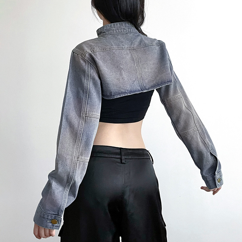 | nameOriginal | American street washed distressed light blue stand collar waistcoat Denim jacket autumn personalized all-match ultra short coat |