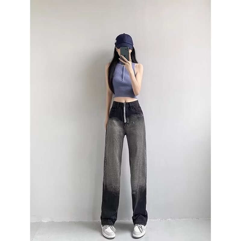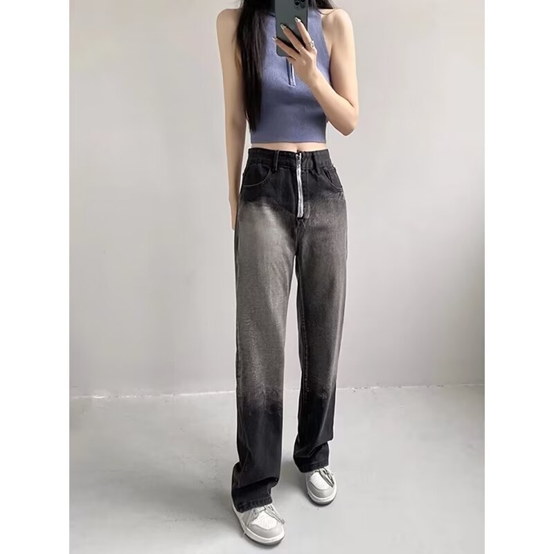 | nameOriginal | American Street Washed Old Gradient Jeans Women's Spring and Autumn Straight Loose European and American High Street Vibe Style Long Pants |