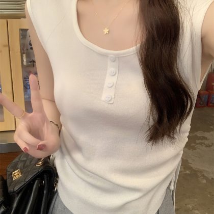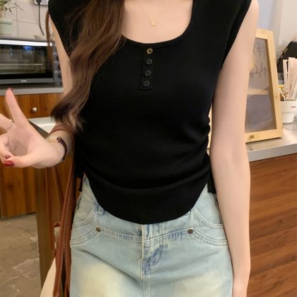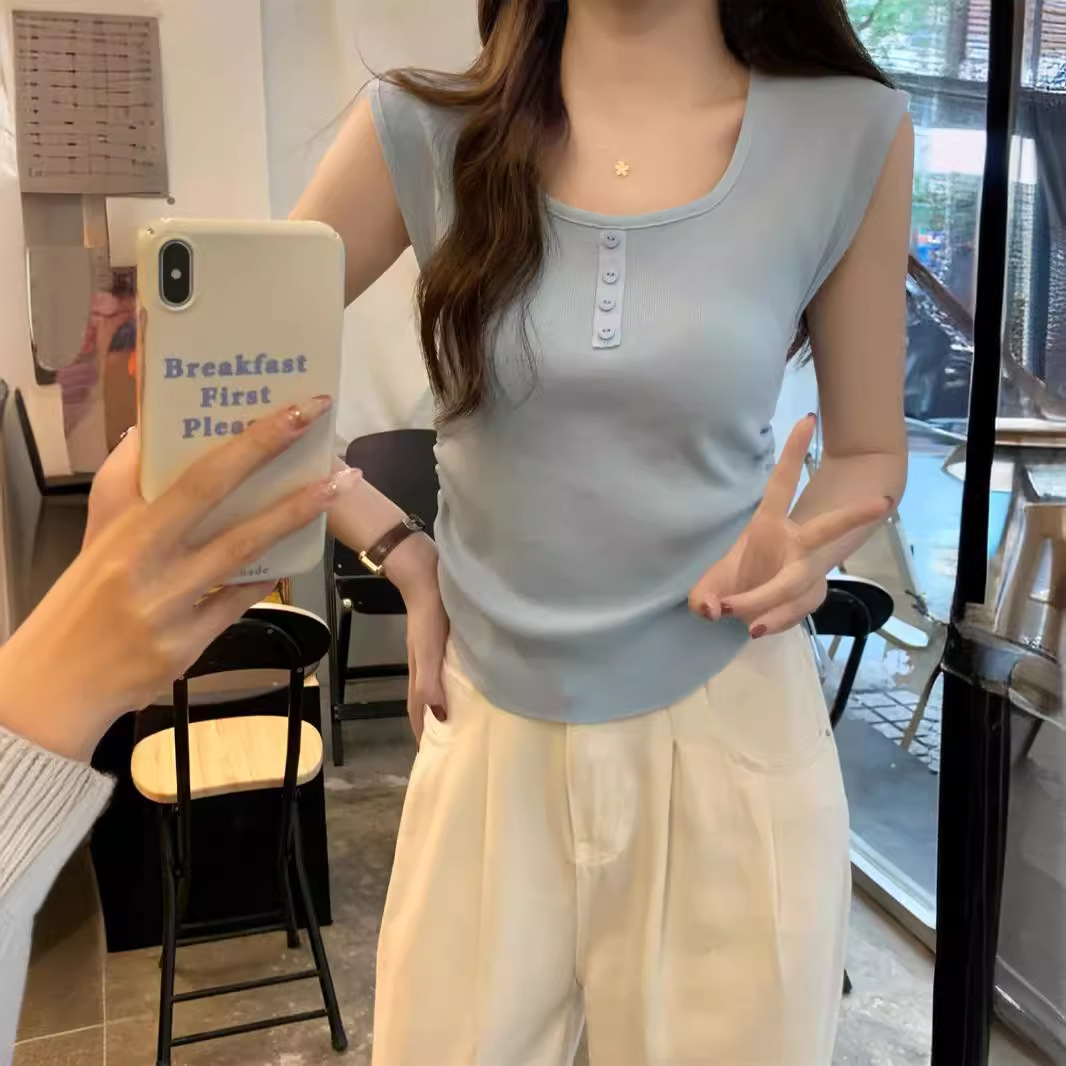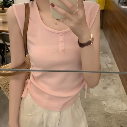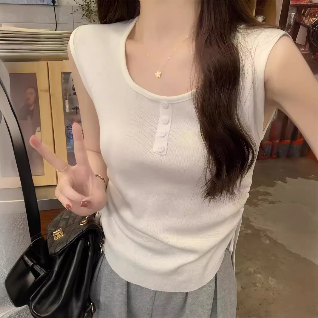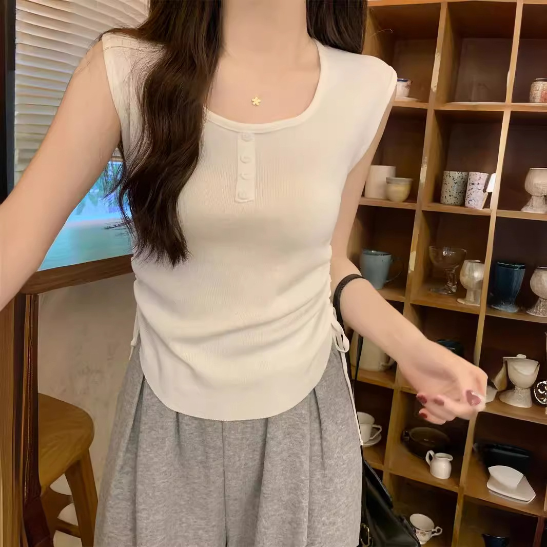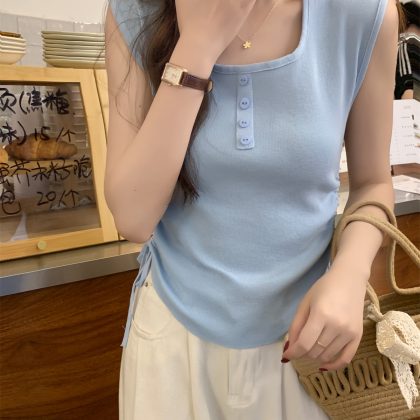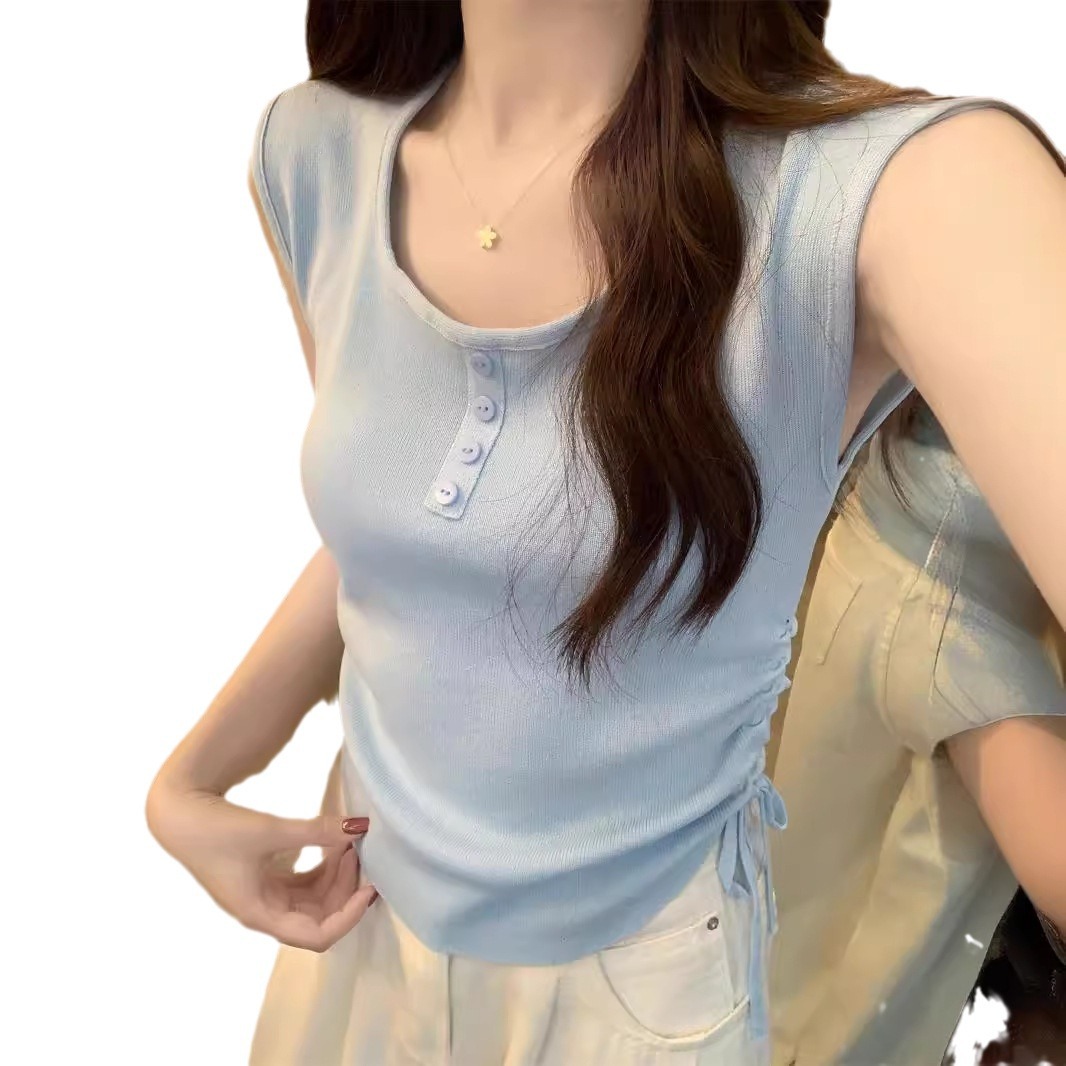 | nameOriginal | American-style 2024 summer good things Korean-style slim-fit button drawstring design all-match sleeveless sweater women's top |