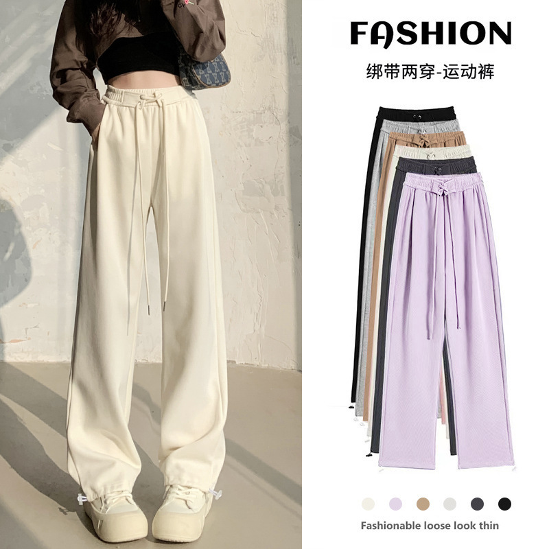 | nameOriginal | American Style All-match Women's Pants Straight Leg Casual Pants 2024 Spring High Waist Elastiness Dosing Strap Two-wear Sports Wide Leg Pants |