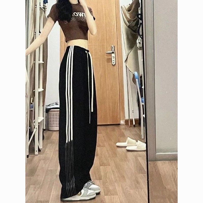 | nameOriginal | American-style Black All-match Line Stitching Wide Leg Pants Slimming High Waist High Street Sports Pants Loose Straight Pants |