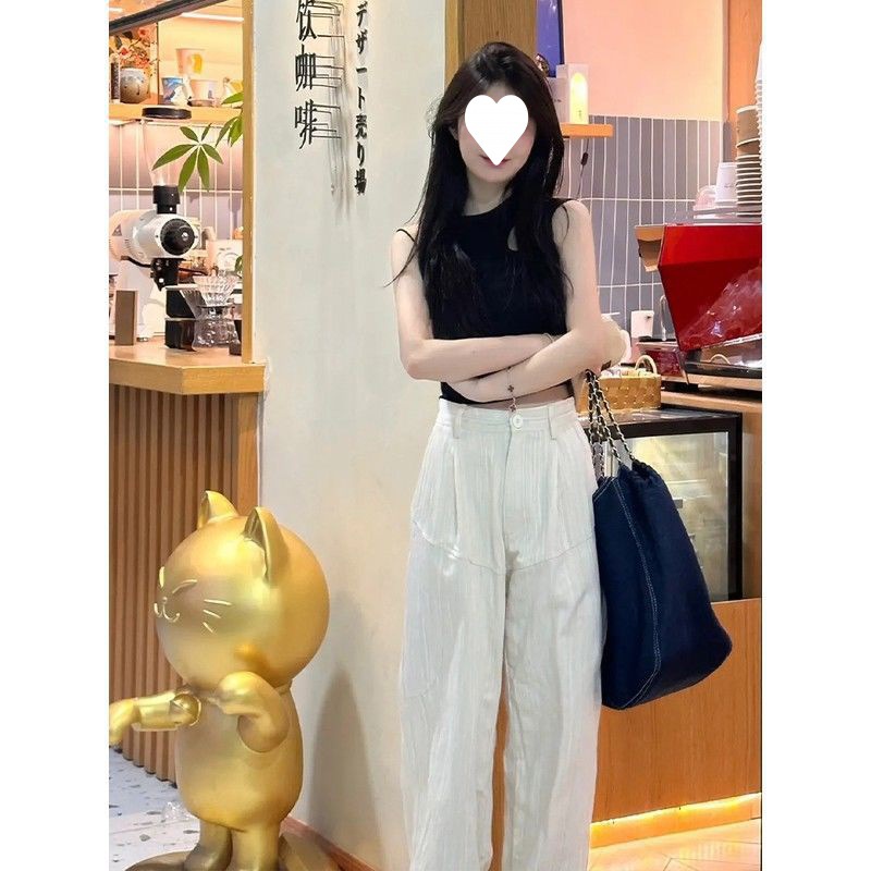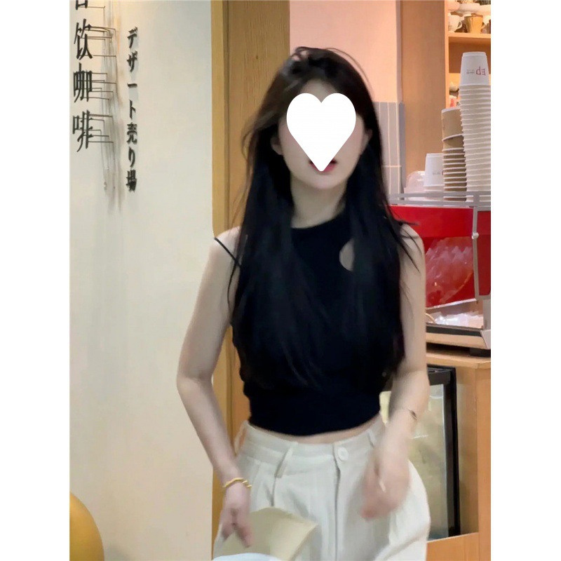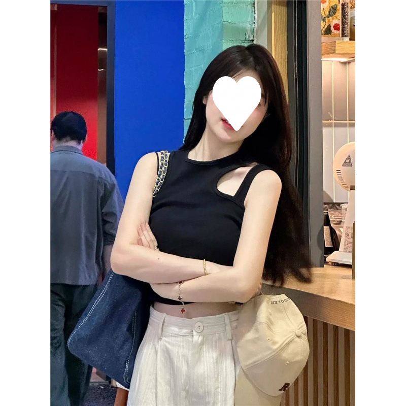 | nameOriginal | American Style Black Slant Shoulder Outer Wear Camisole Women's Summer 2024 New Slimming Sweet Spice Girls Sleeveless Short Top |