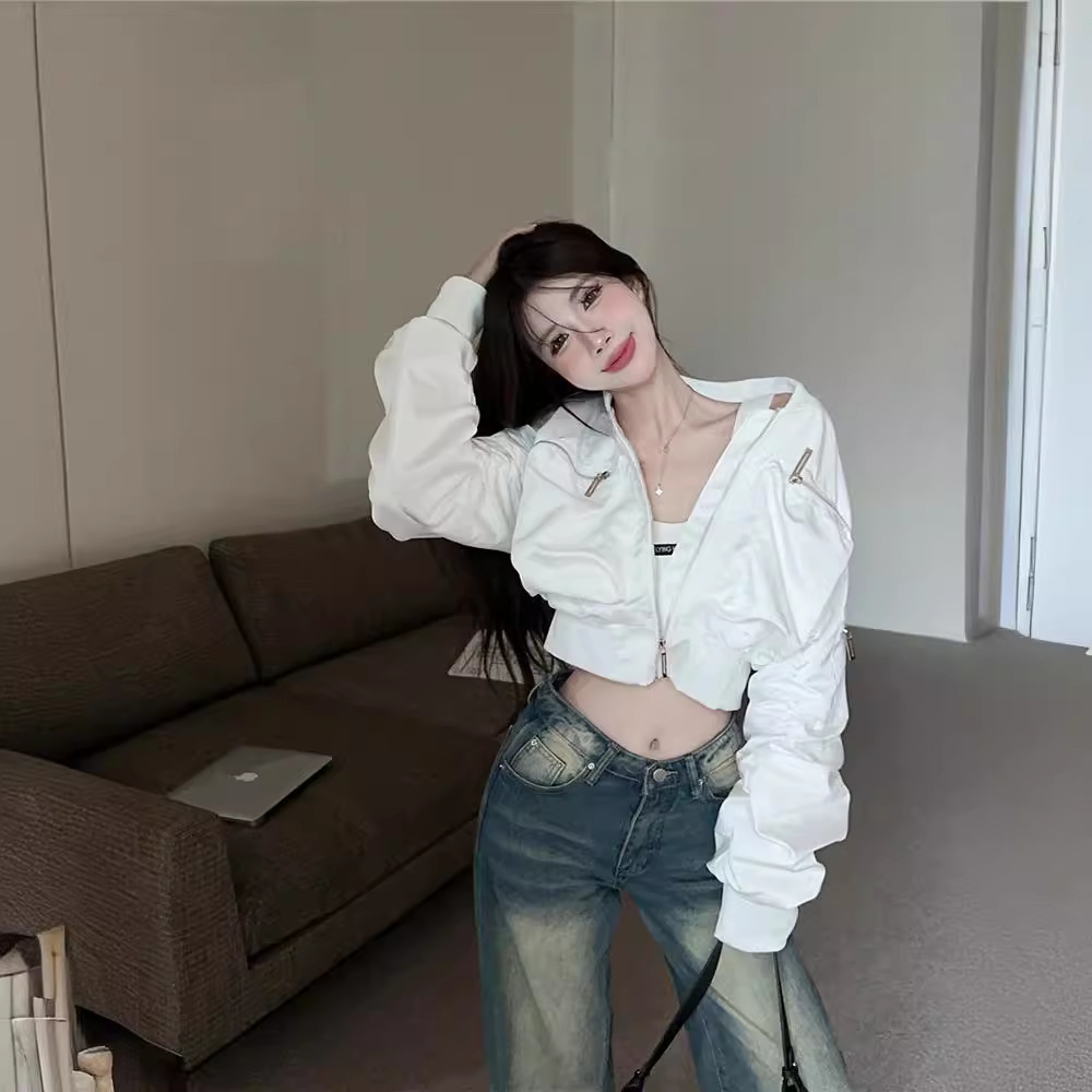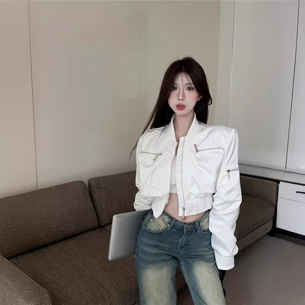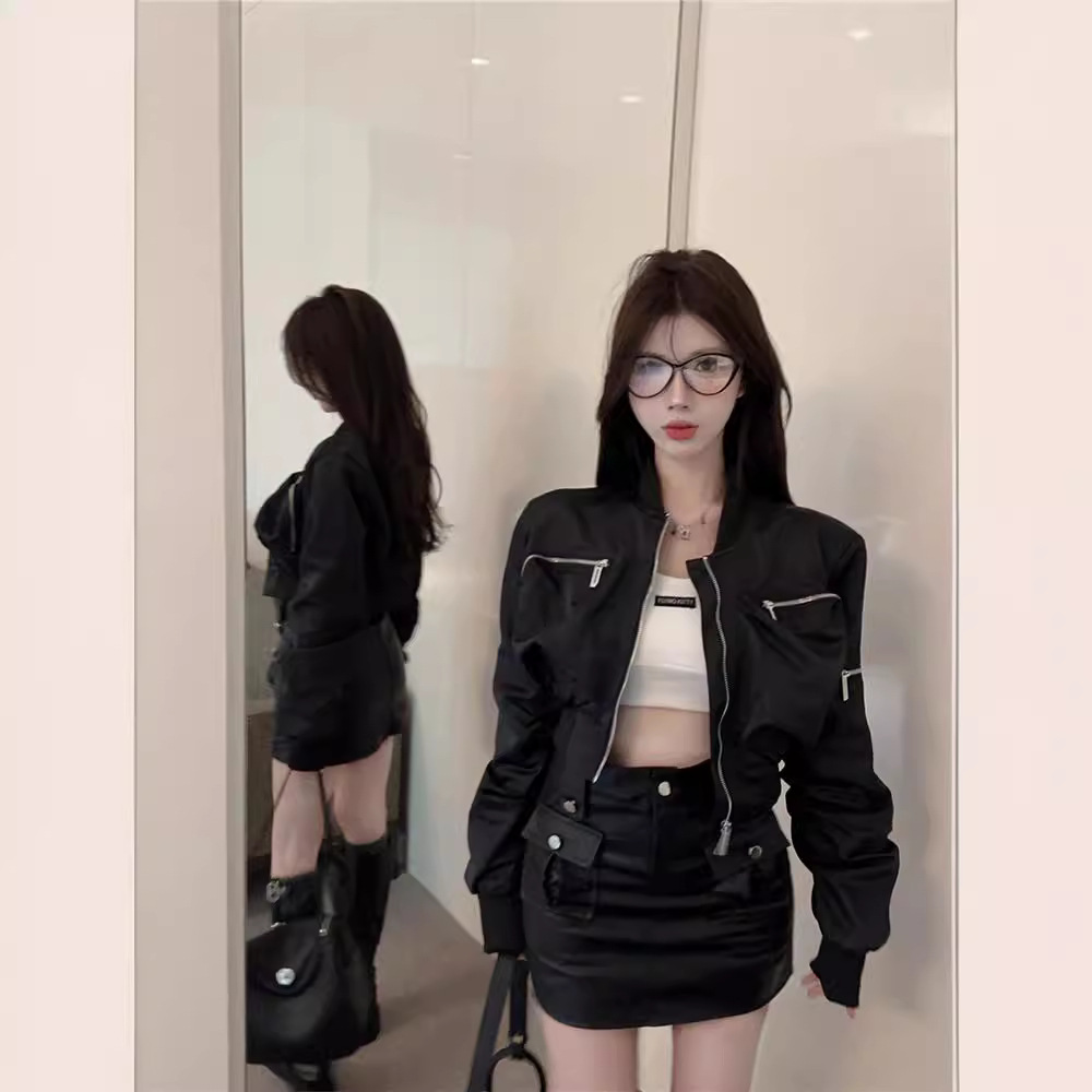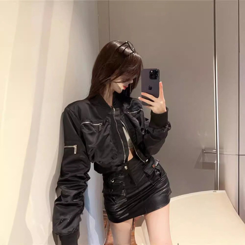 | nameOriginal | American-style Black Tooling Baseball Suit Coat Women's Spring and Autumn 2024 New High-end Aviator Jacket Short Top |