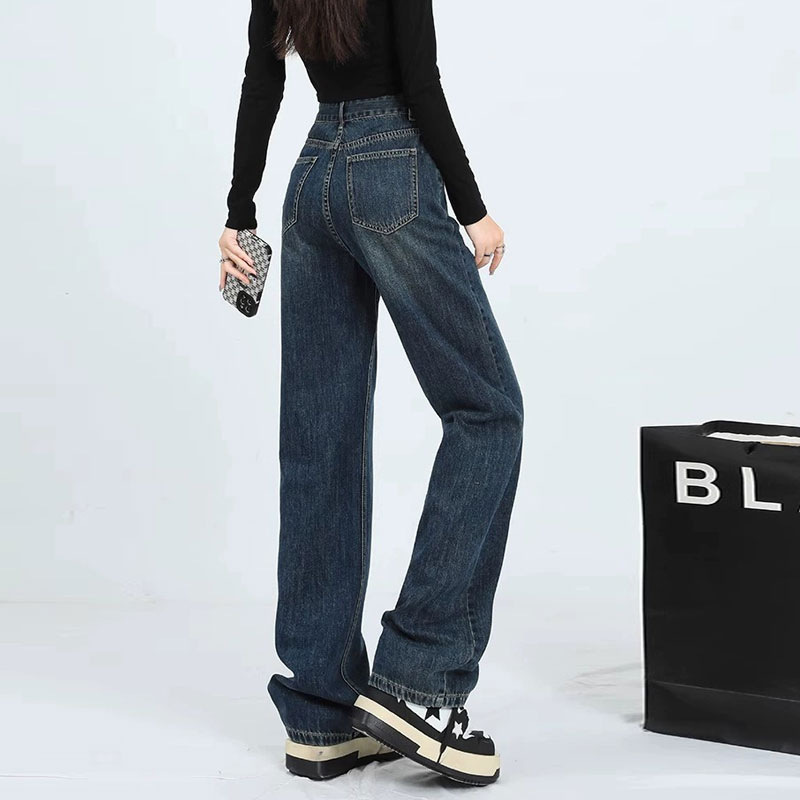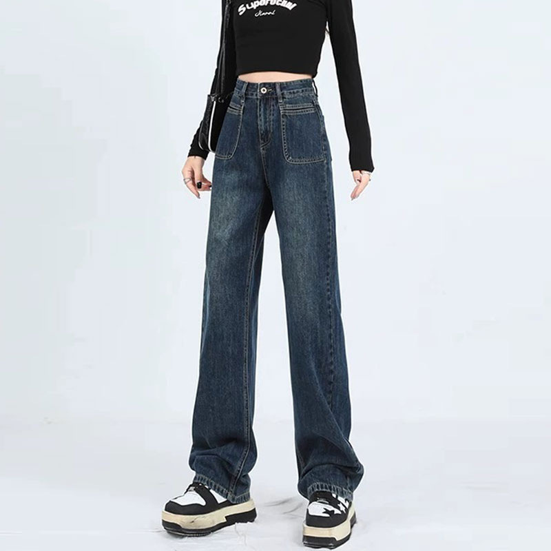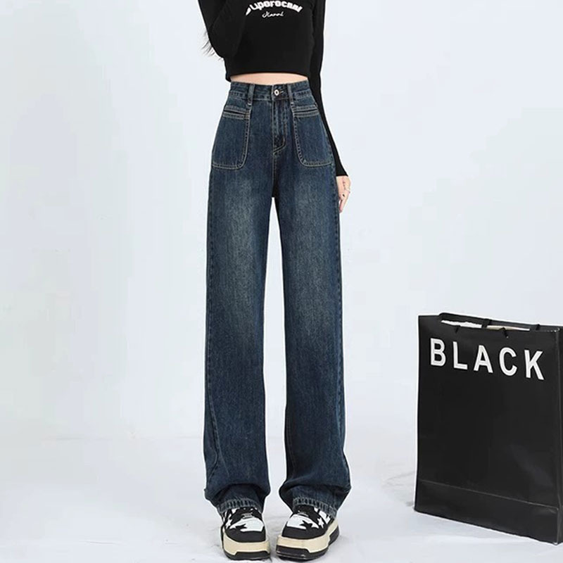 | nameOriginal | American-style Blue Jeans Women's Pocket Design Sense Straight Leg Pants Casual Pear-shaped High Waist Trousers |