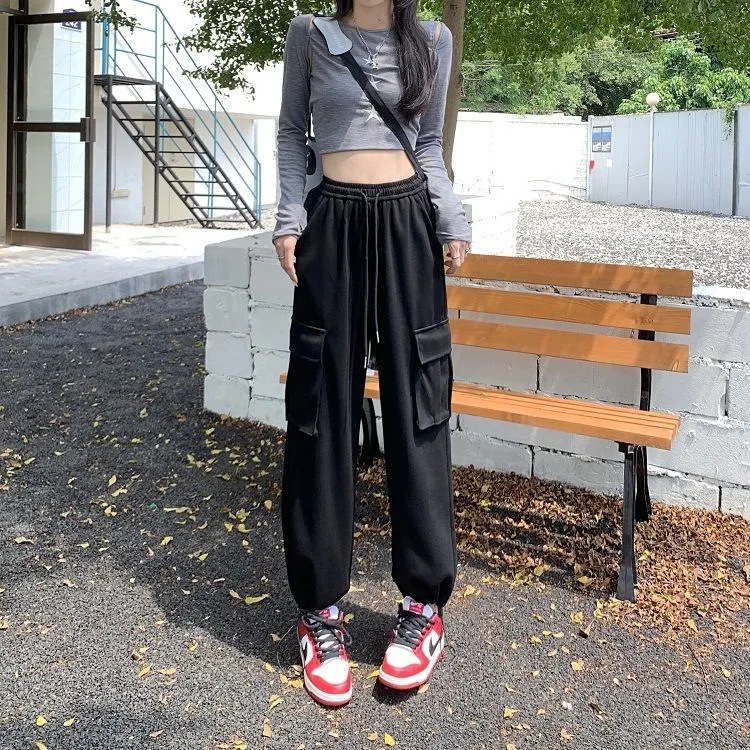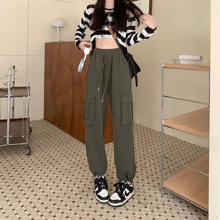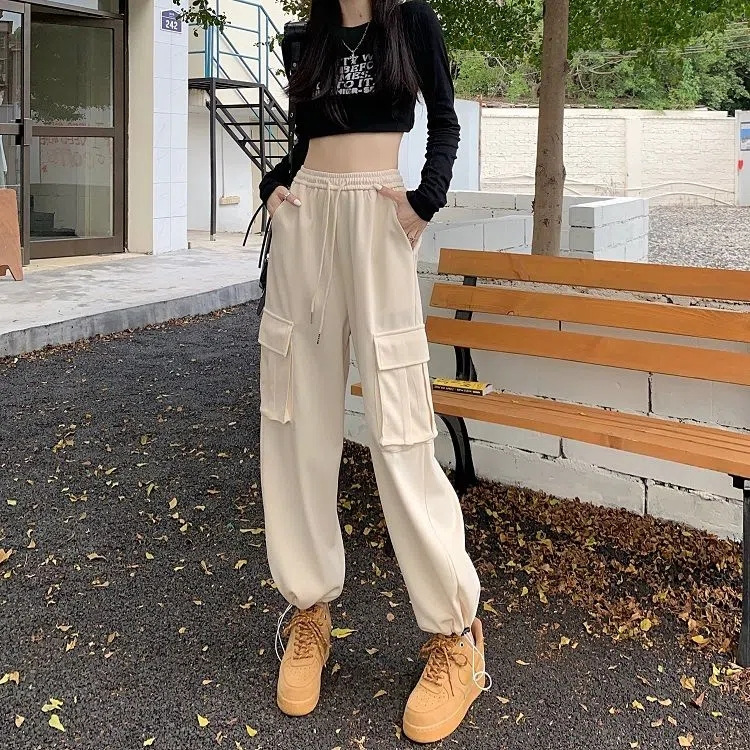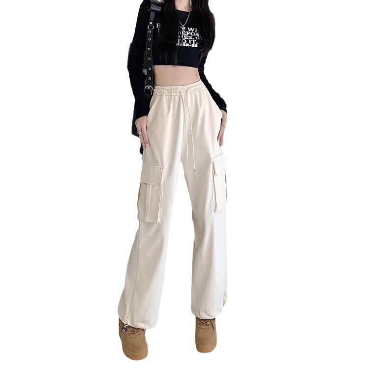 | nameOriginal | American Style Drawstring Sweatpants Women's Amazon Spring and Autumn New Design Sense High Waist Cargo Pants Casual Wide Leg Pants for Children |