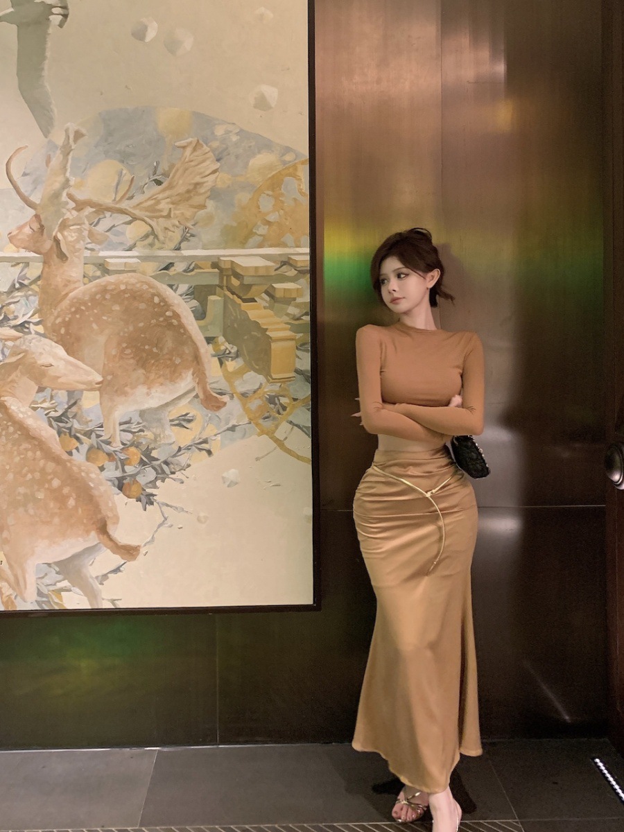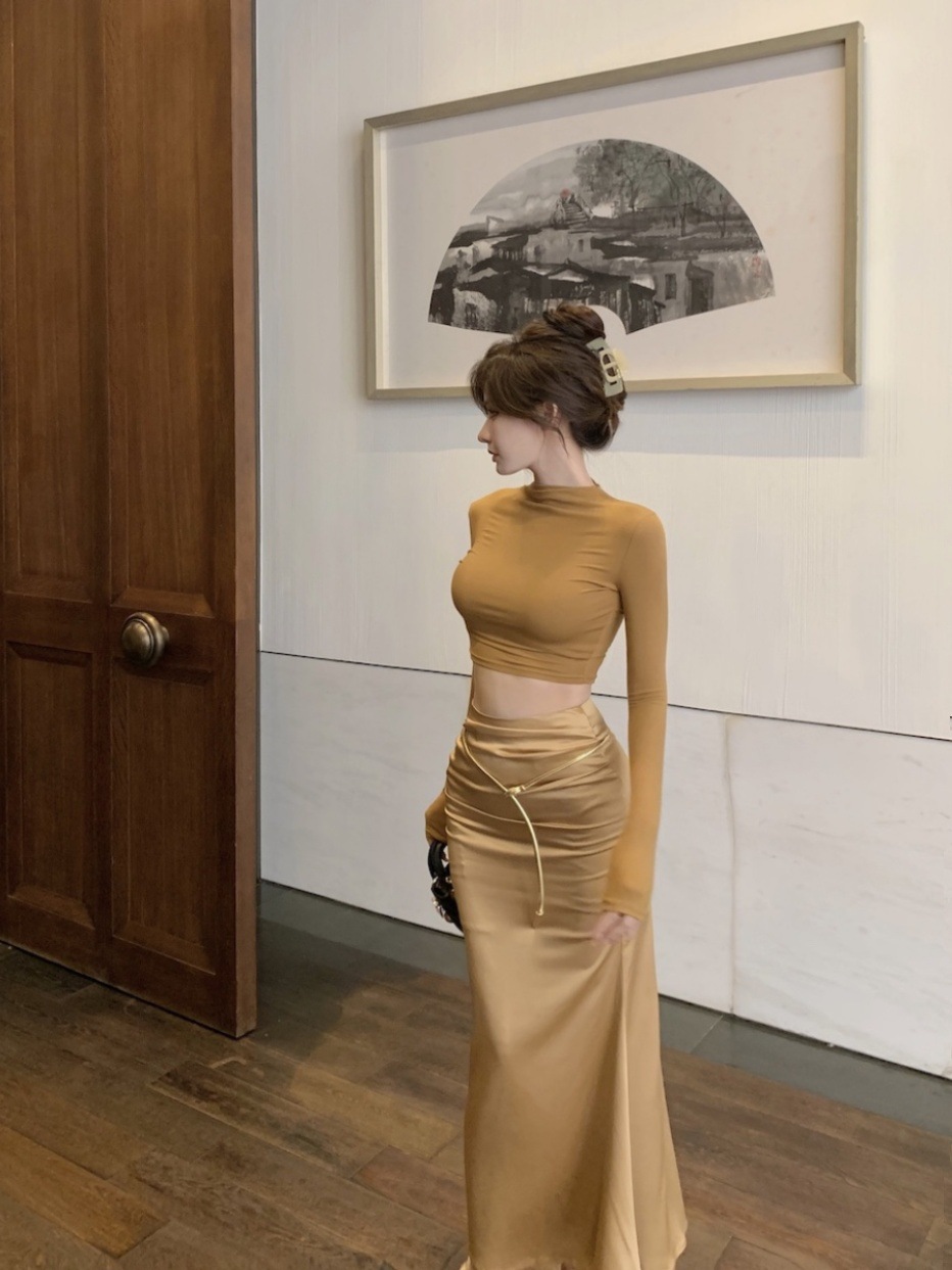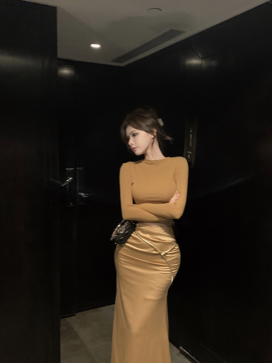 | nameOriginal | American-style elegant suit slim-fit long-sleeved T-shirt women's autumn high waist sheath skirt short skirt two-piece set |