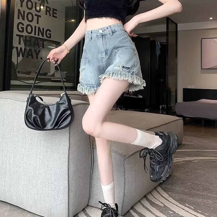 | nameOriginal | American Style Fringe Tassel Wide Leg Denim Shorts Women's 2024 Summer Thin High Waist Loose Slim-fit A- shaped Hot Pants |