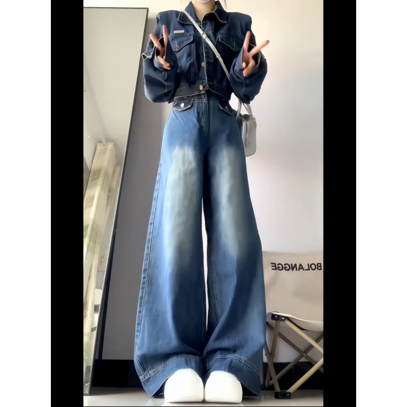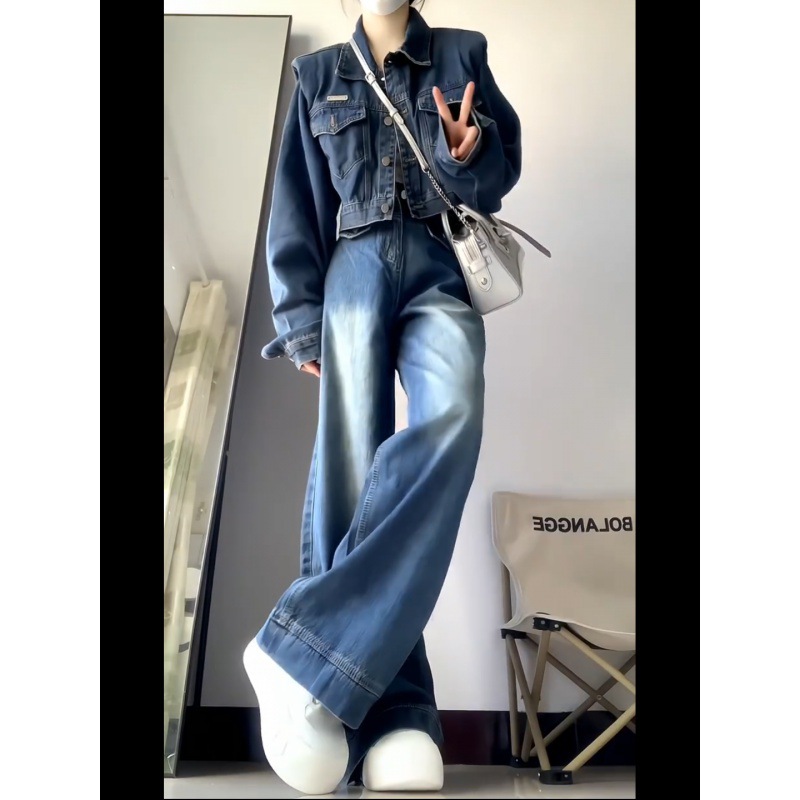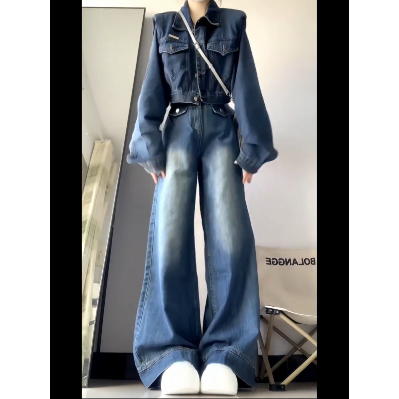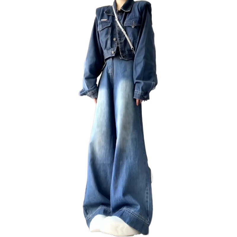 | nameOriginal | American Style High-end Sense Denim suit Women's Autumn and Winter High Waist Loose Wide-leg Pants Waistcoat Short Denim Jacket |
