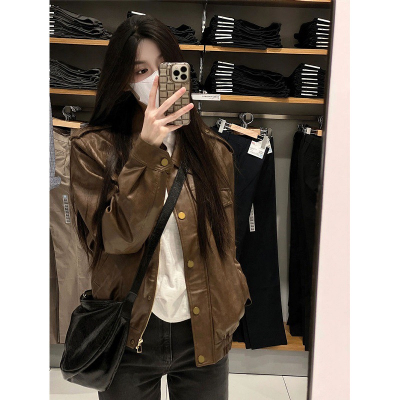 American Style High-end Sense Leather Jacket Women’s Short Autumn New Fashion Simple Western Style All-match Leather Jacket Trendy
