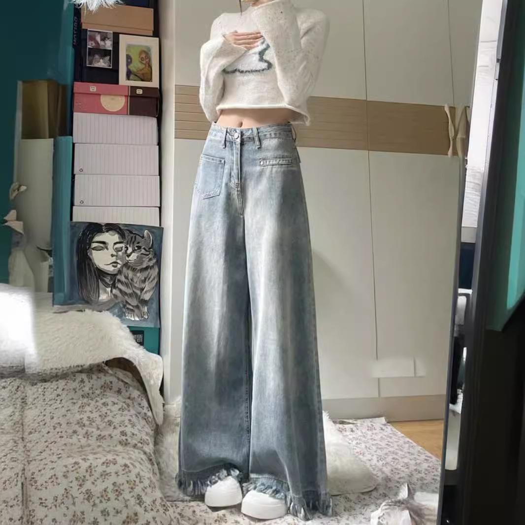 American Style High Waist Jeans Women’s Summer 2024 New Retro Tassel Loose Slimming All-match Casual Wide Leg Pants