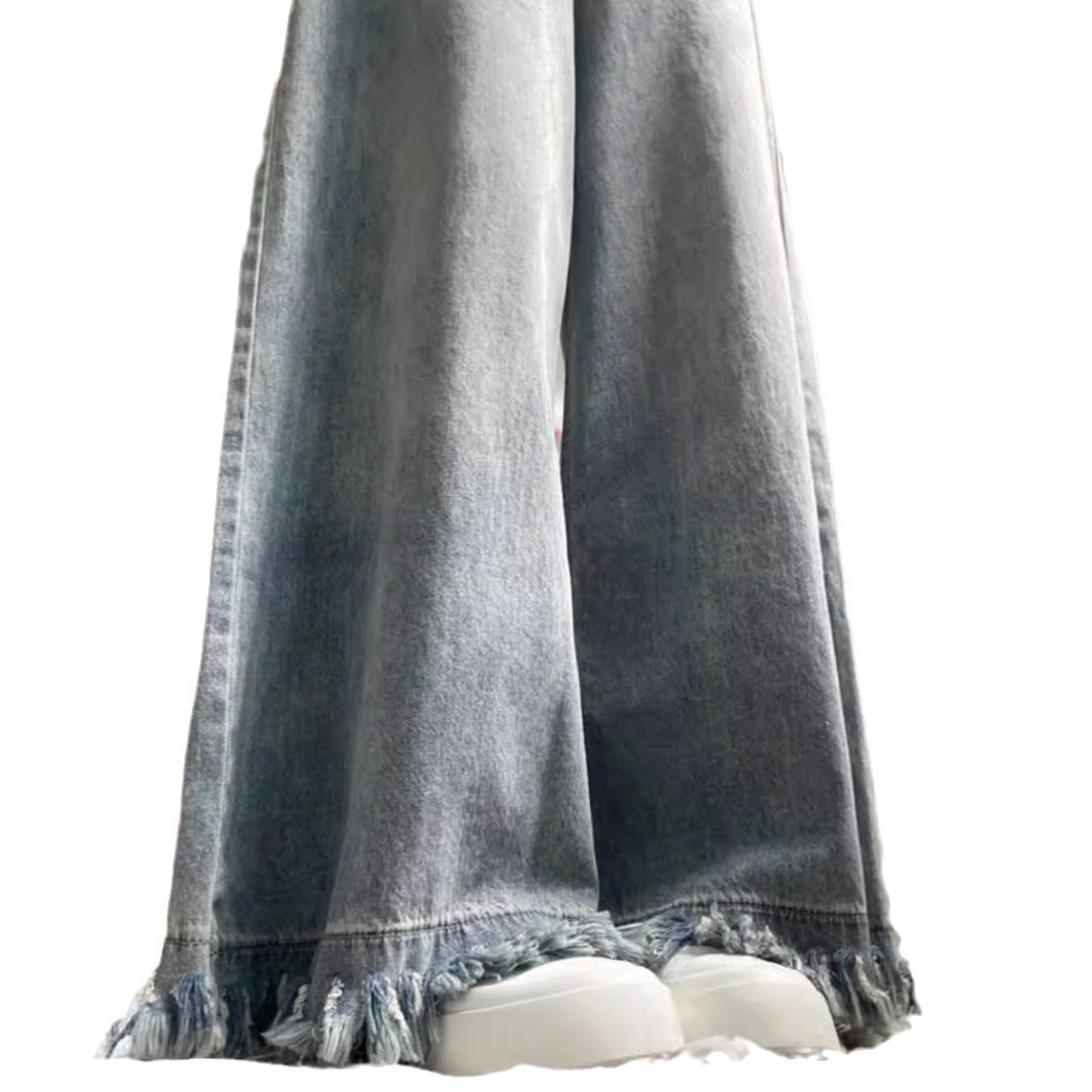 American Style High Waist Jeans Women's Summer 2024 New Retro Tassel Loose Slimming All-match Casual Wide Leg Pants