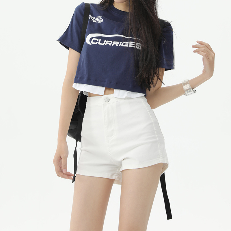 American Style High Waist Stretch Denim Shorts Women’s Summer Spice Girls Tight Hip Slimming All-match Fashionable Trendy Hot Pants