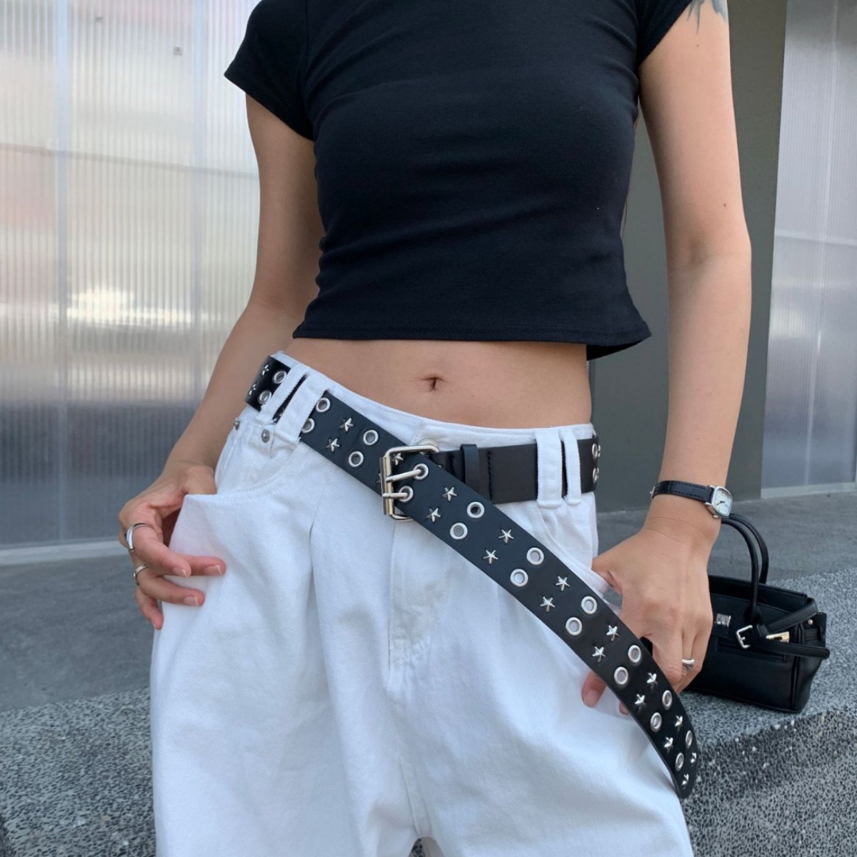 American-style Hip-hop Belt Women's New Wide Belt High-end Punk Style Willow Nails Black All-match Ins Casual Pants Belt