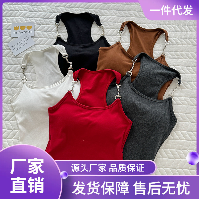 American Style Hot Girl Chic Chain Camisole Women’s Cotton Belt Chest Pad Niche Design Sense Wrap Chest Beautiful Back Top Trendy