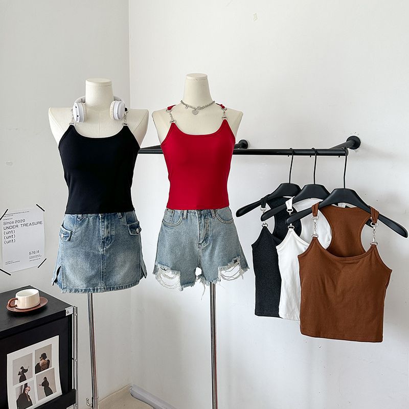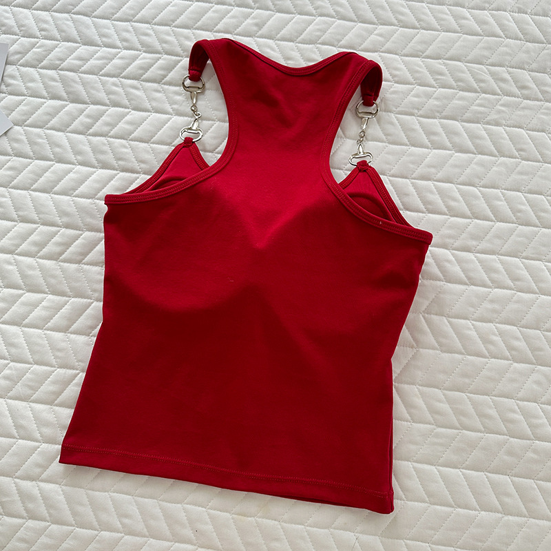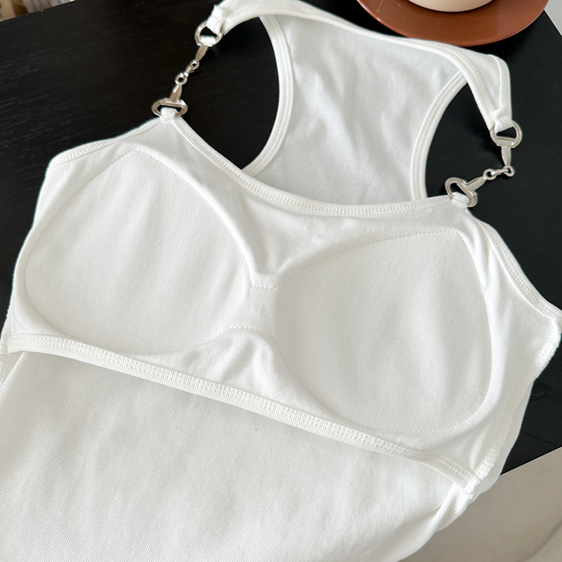 American Style Hot Girl Chic Chain Camisole Women's Cotton Belt Chest Pad Niche Design Sense Wrap Chest Beautiful Back Top Trendy