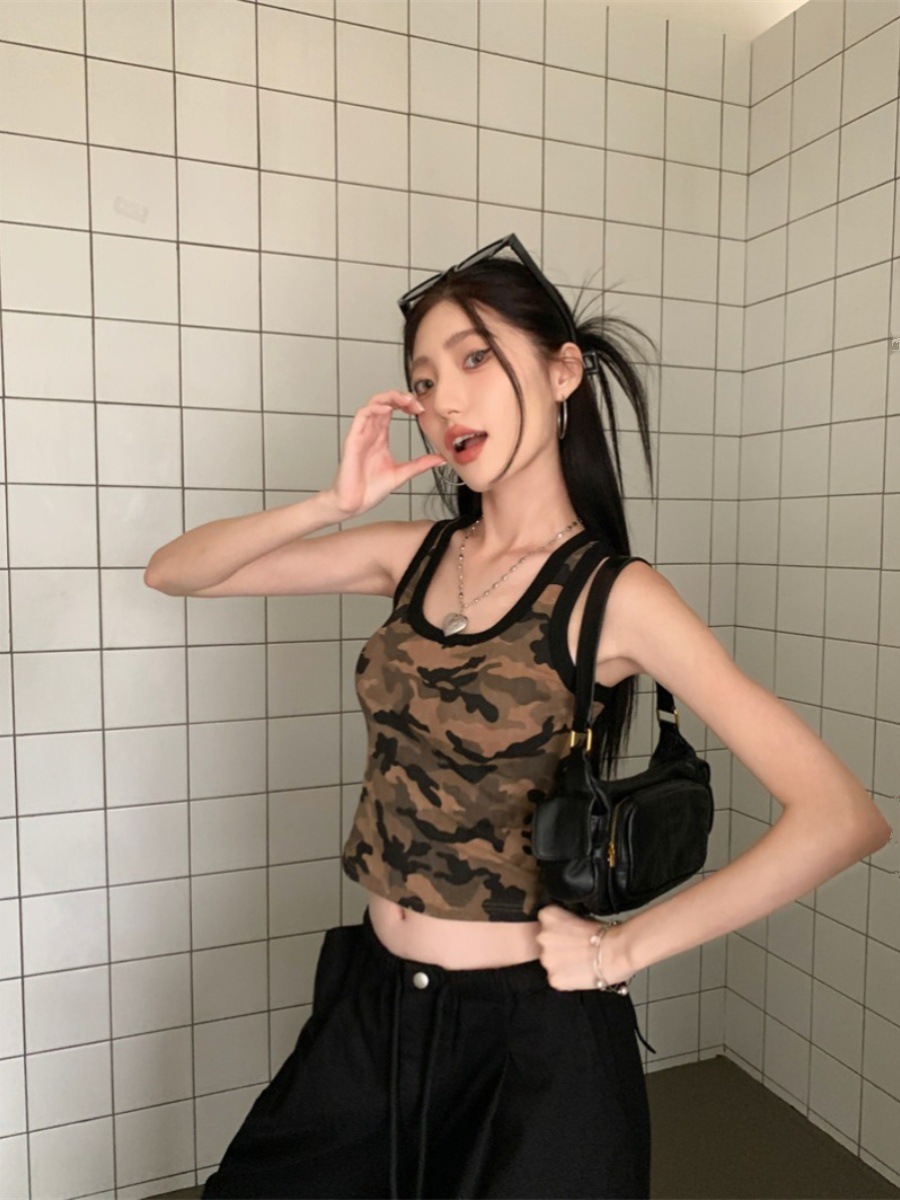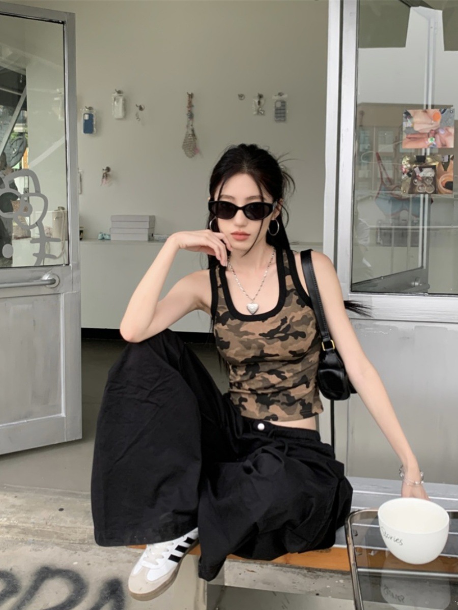 | nameOriginal | American Style Hot Girl Fashionable Cool Two-piece Set Women's Summer 2024 New Arrival Short Camouflage Vest Thin Workwear Casual Trousers |