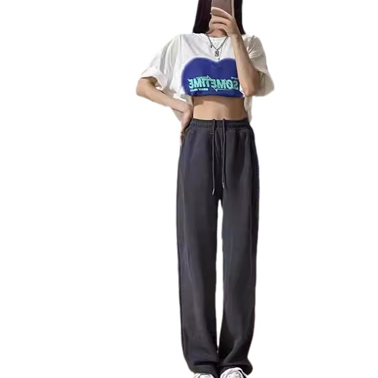 | nameOriginal | American Style Hot Girl Sports Pants Women's Casual Pants Summer Loose Slim High Waist Drawstring Pants Grey All-match Sweatpants |