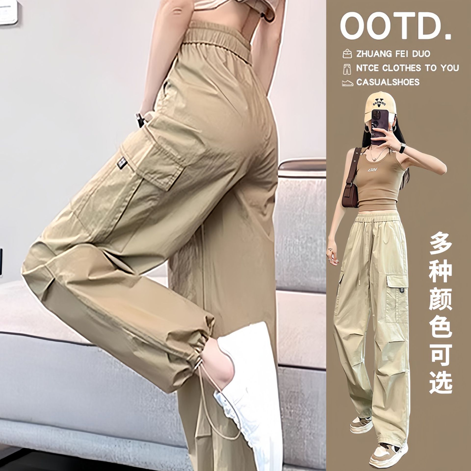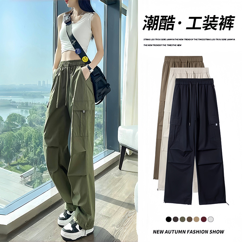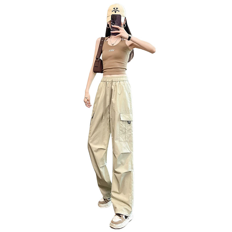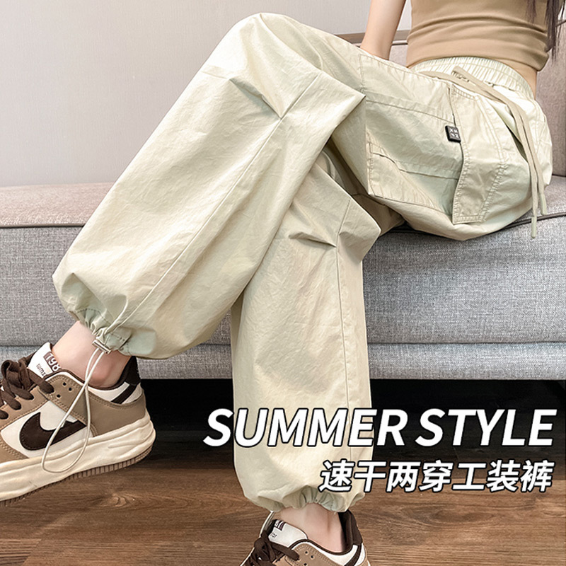 American Style Ice Silk Quick-drying Crock Pants Women’s Summer Thin Small High Waist Slimming Leg Wide Leg Casual Sports Pants