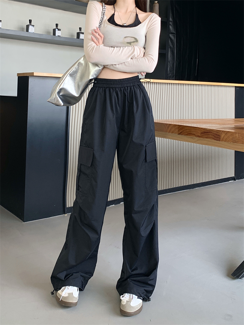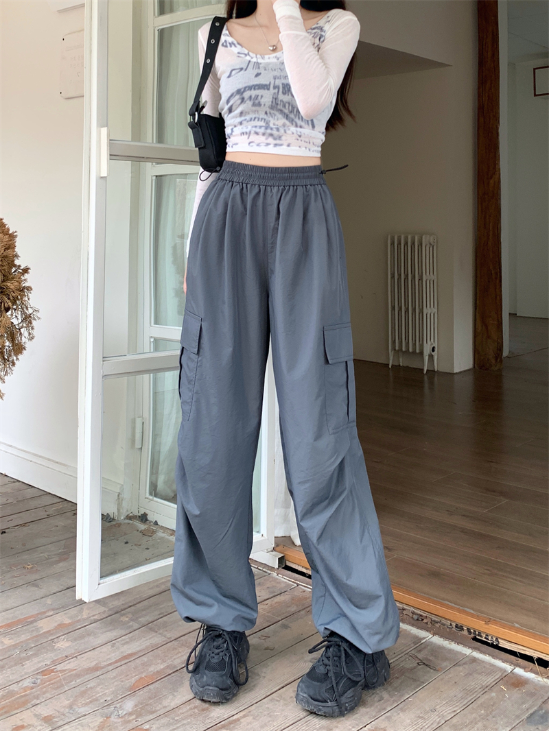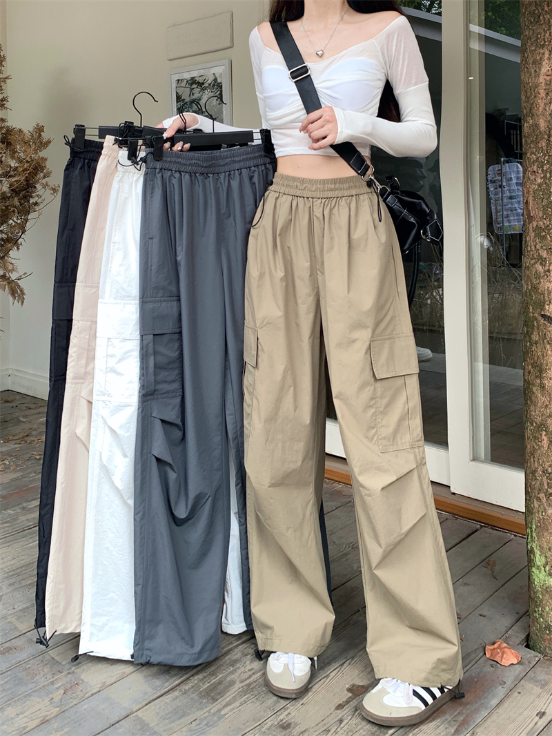 American-style khaki quick-drying overalls thin pants 2024 summer women’s short wide-leg elastic waist sports pants