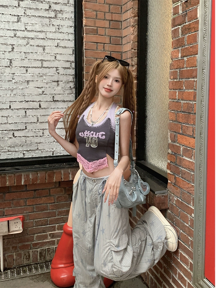 | nameOriginal | American style lace splicing contrasting color short overalls suspenders |