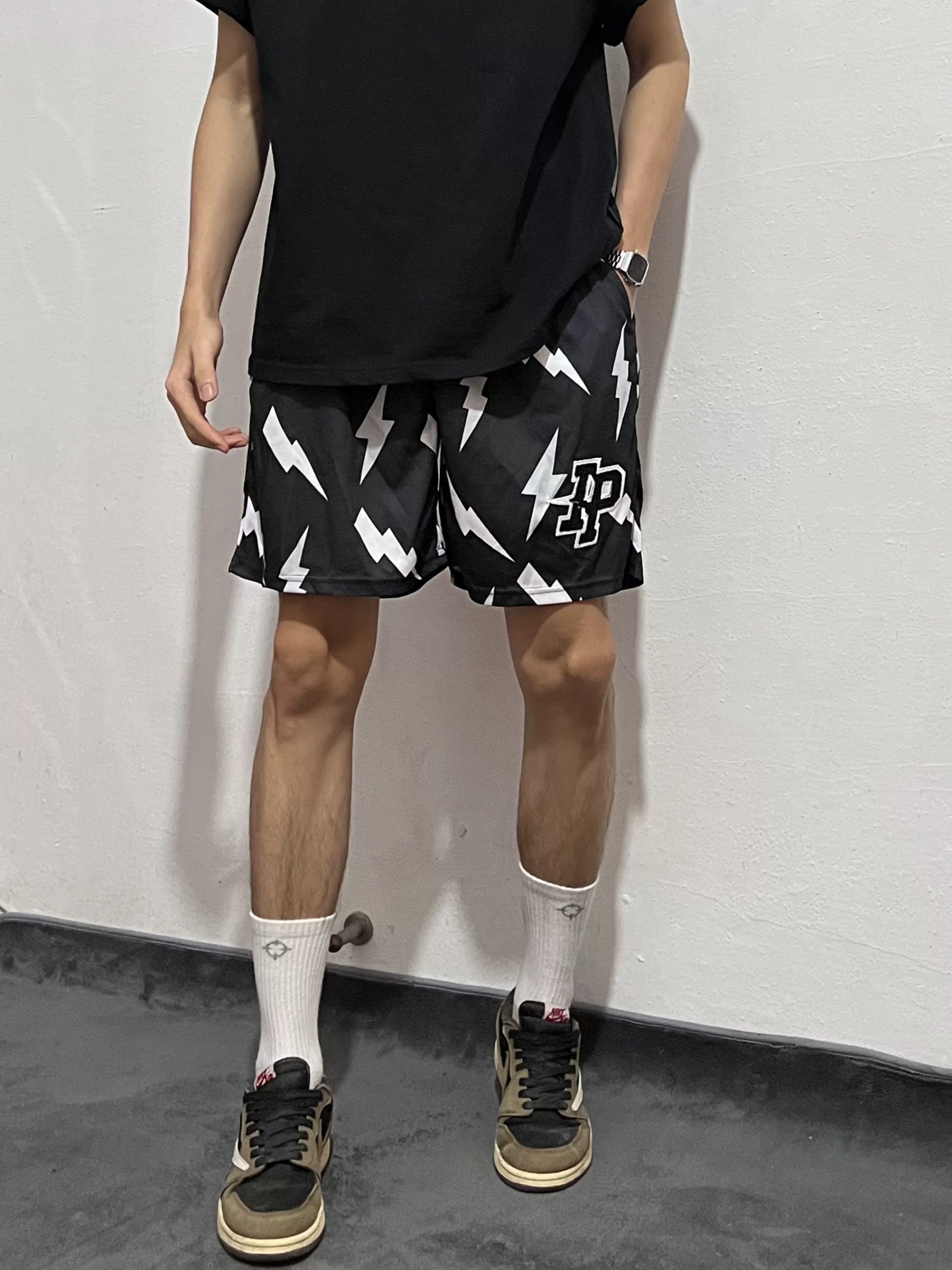 | nameOriginal | American style lightning pattern below-the-knee basketball breathable shorts |