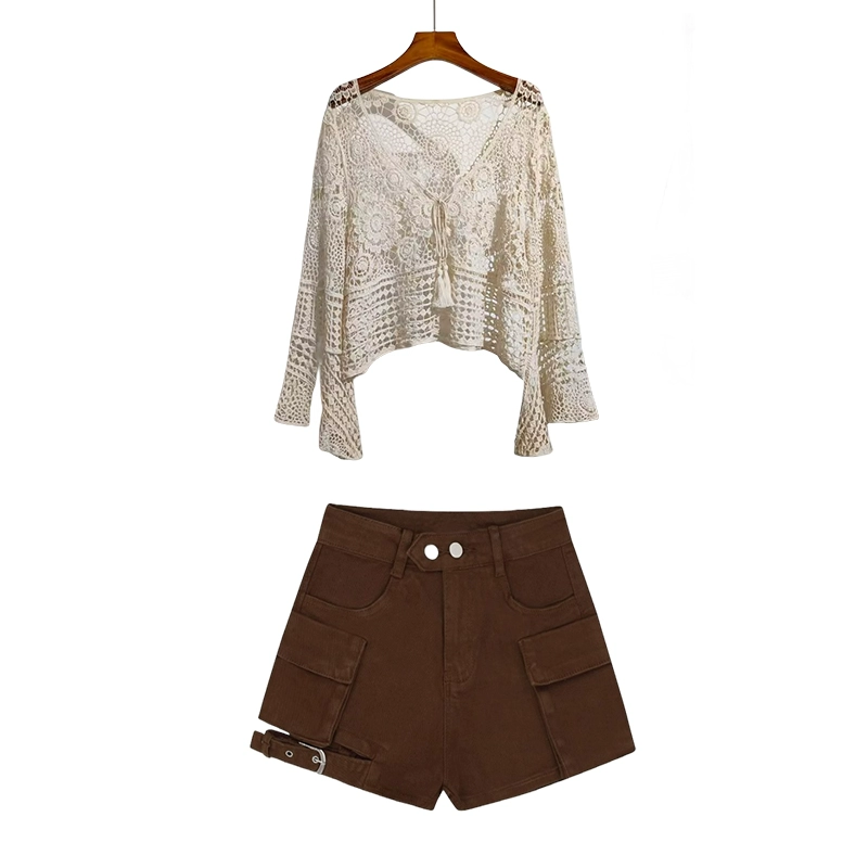 | nameOriginal | American style outfit, denim hot pants, sun protection blouse |