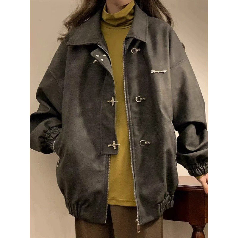 American Style Retro Airplane Buckle Coat Women's Spring and Autumn Small Loose Casual Slim Look Age-reducing Early Autumn Jacket Trendy Ins