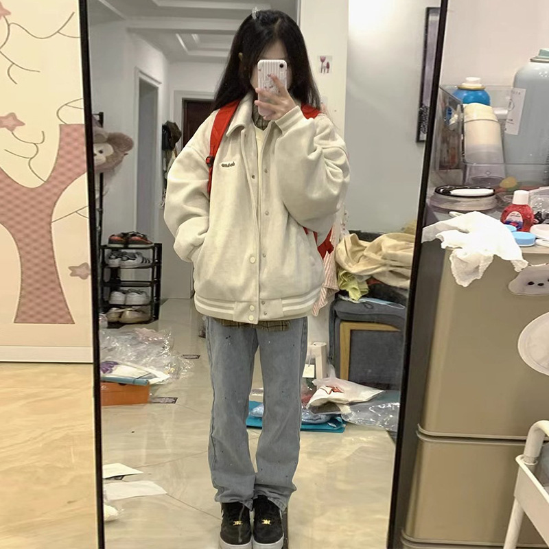 American Style Retro Baseball Suit Coat Women's 2024 New Spring Loose Casual Jacket Sweater Cardigan Top