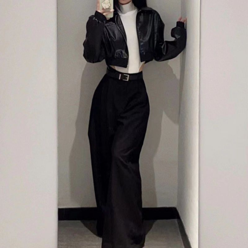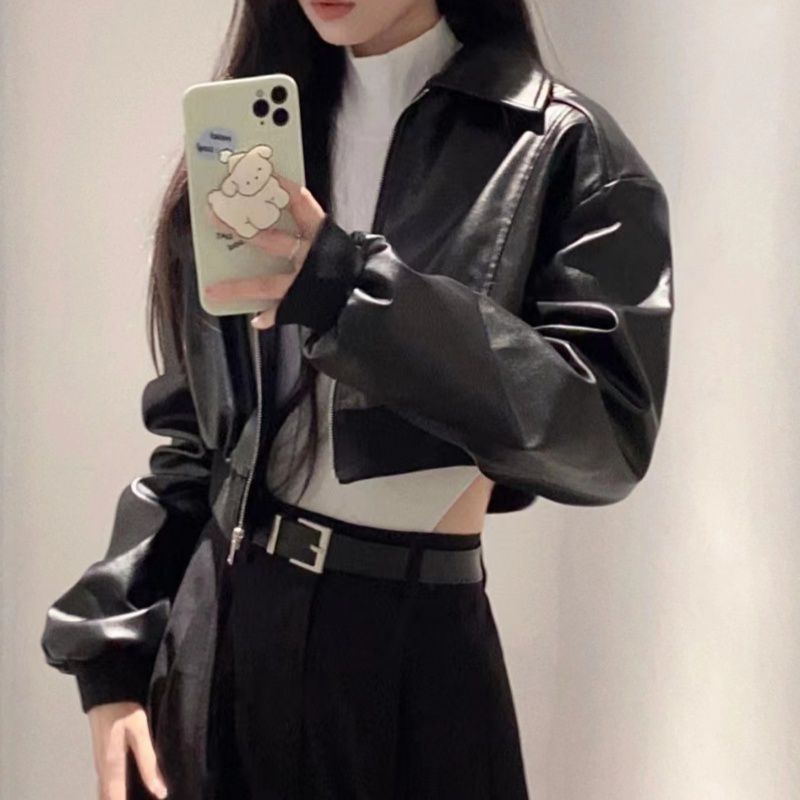 | nameOriginal | American Style Retro Black Leather Jacket Women's Petite Short Design Niche Leather Jacket Trendy Cool Spring and Autumn Style |