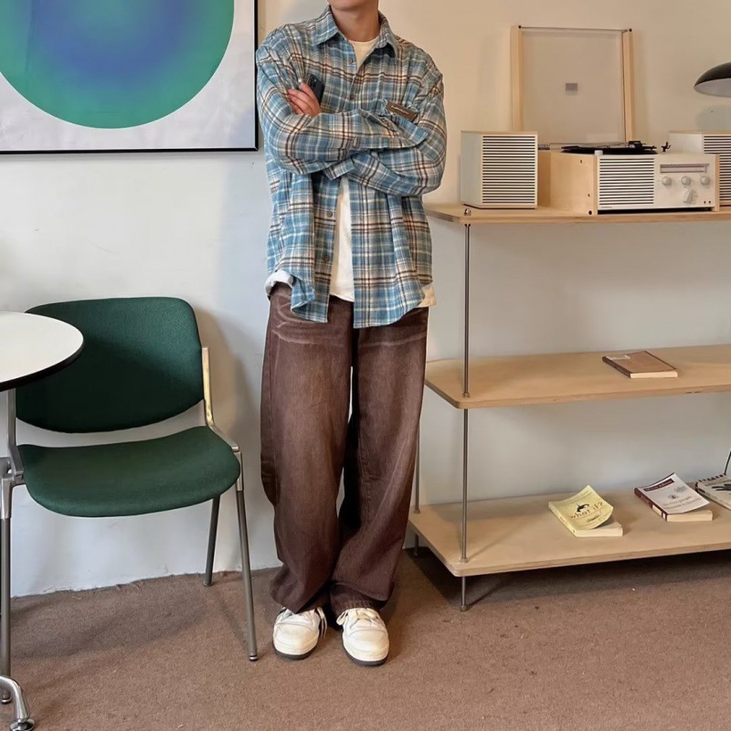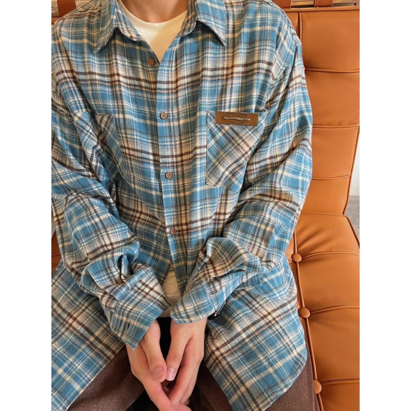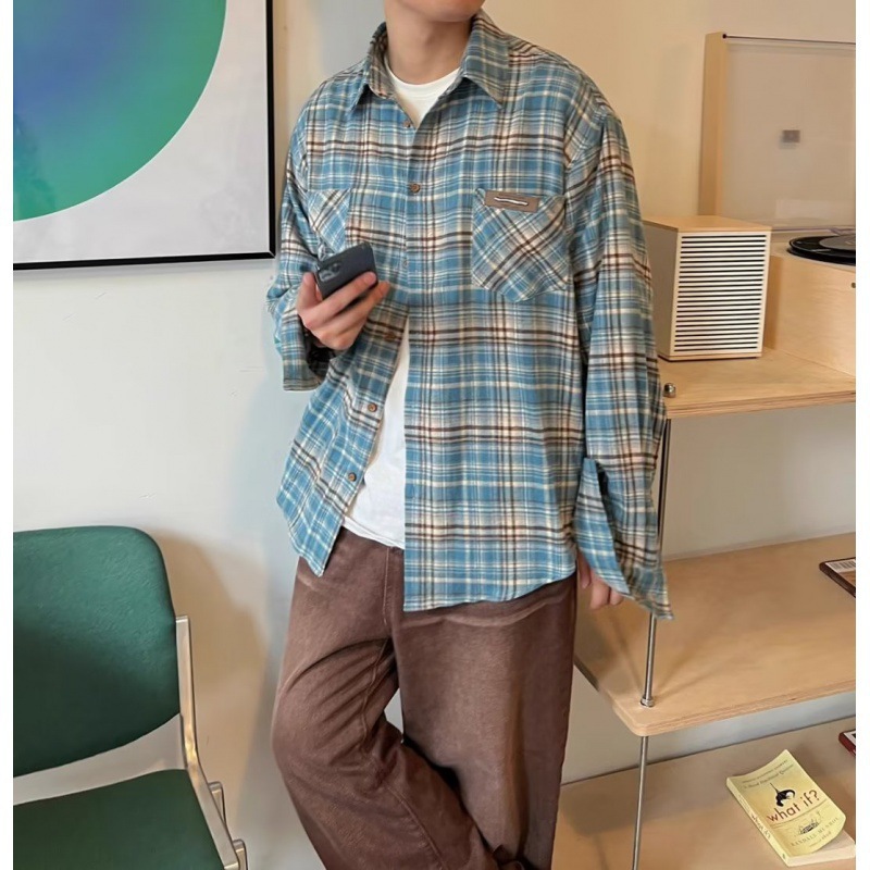 American Style Retro Blue Plaid Shirt Men’s and Women’s Loose Lazy Style Spring and Autumn Niche Trendy Brand Casual All-Match Jacket Trendy