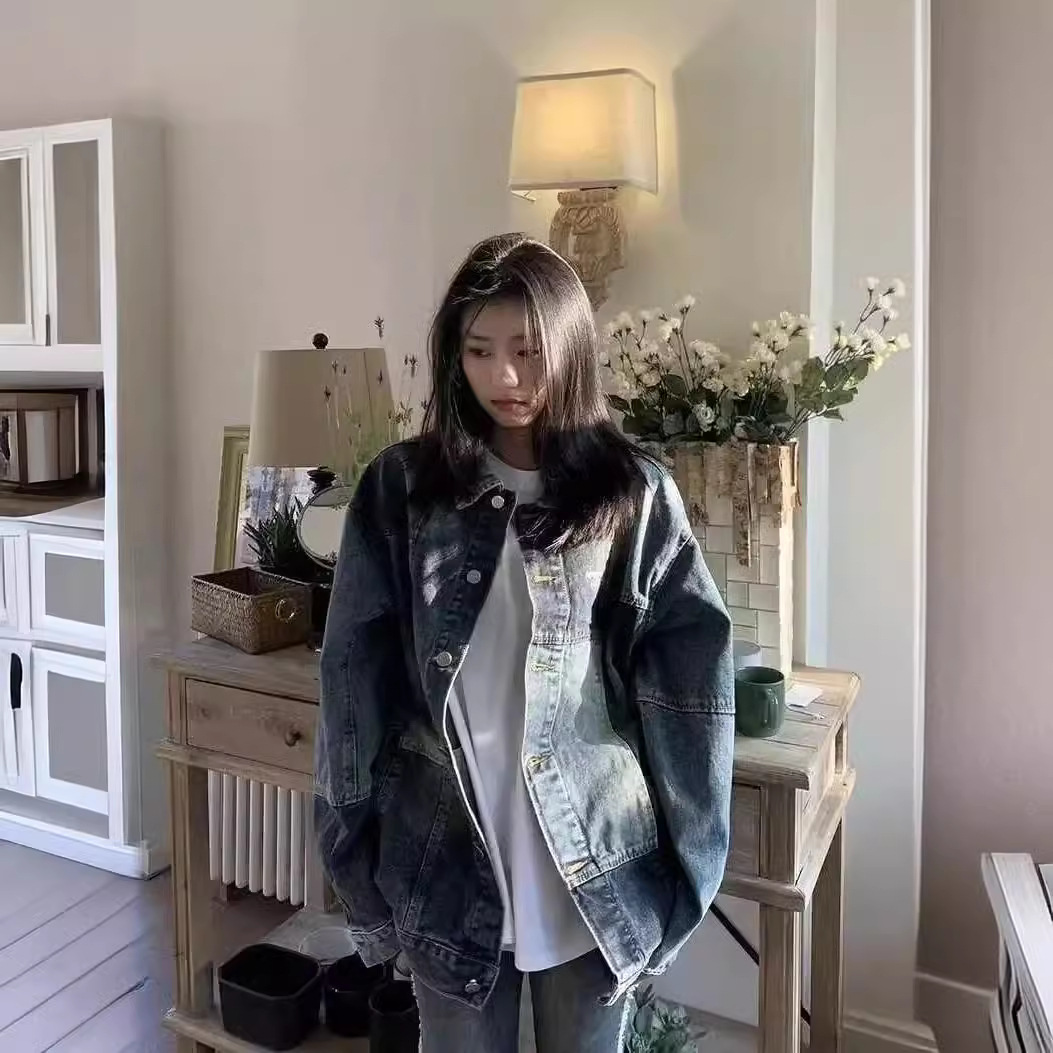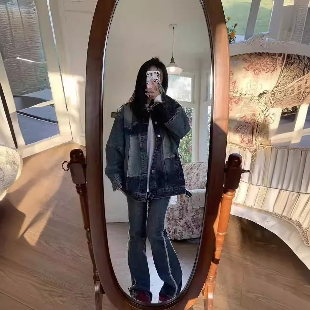 American Style Retro Blue Stitching Denim Coat Women’s Autumn 2023 New Loose Niche Design Sense Jacket Top