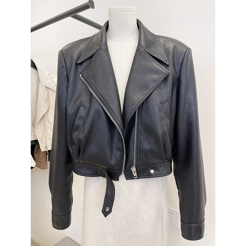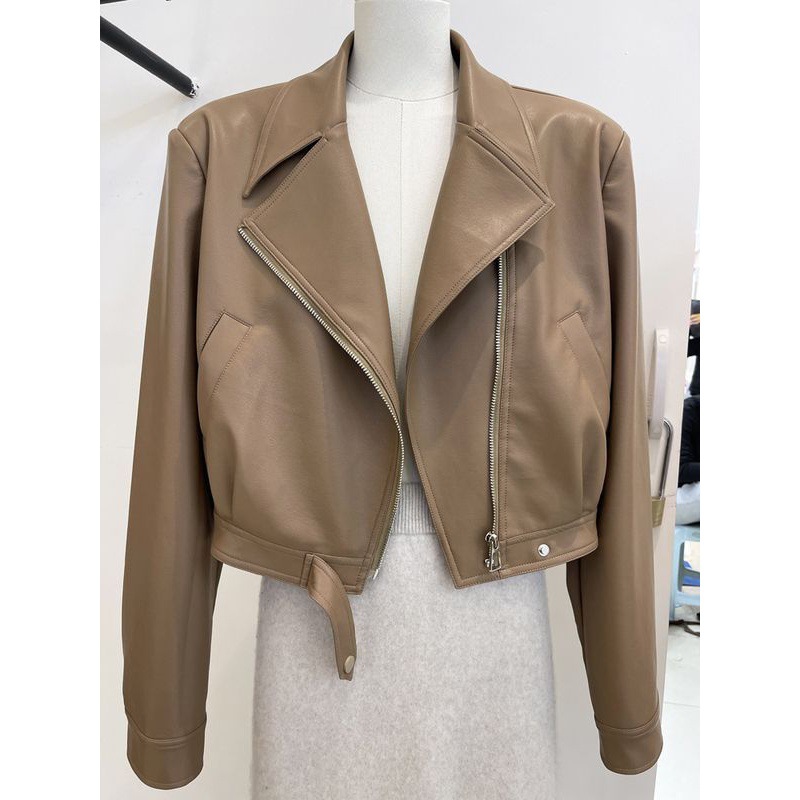 | nameOriginal | American-style retro brown PU leather coat women's short 2023 spring and autumn lapel motorcycle jacket top small leather coat |