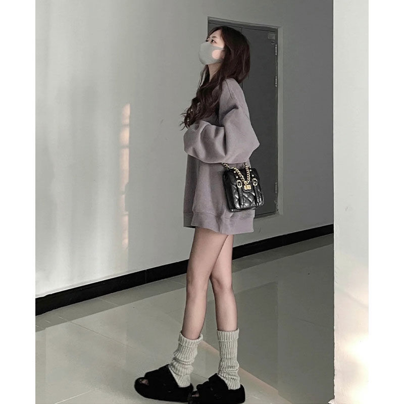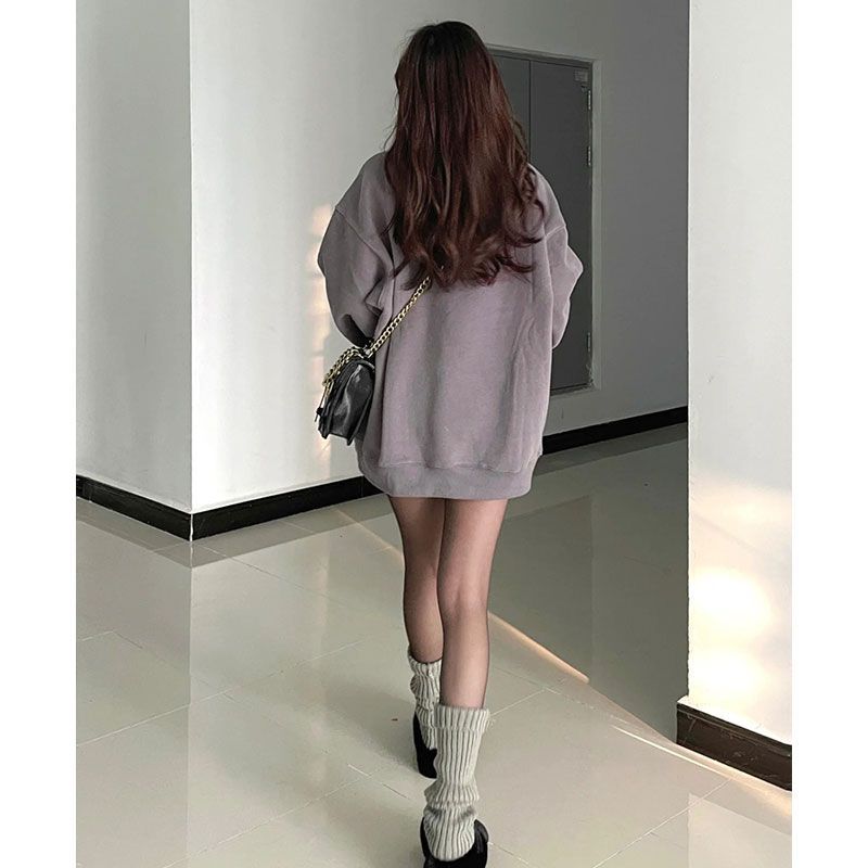 American Style Retro Cement Grey Sweater Women’s Winter fleece-lined Thickened Loose Couple’s Round Neck Top Men’s Jacket