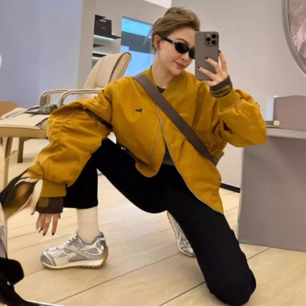 | nameOriginal | American Style Retro Collar Jacket Flying Suit Women's Spring and Autumn 2024 New Loose Embroidered Drawstring Baseball Suit Coat |