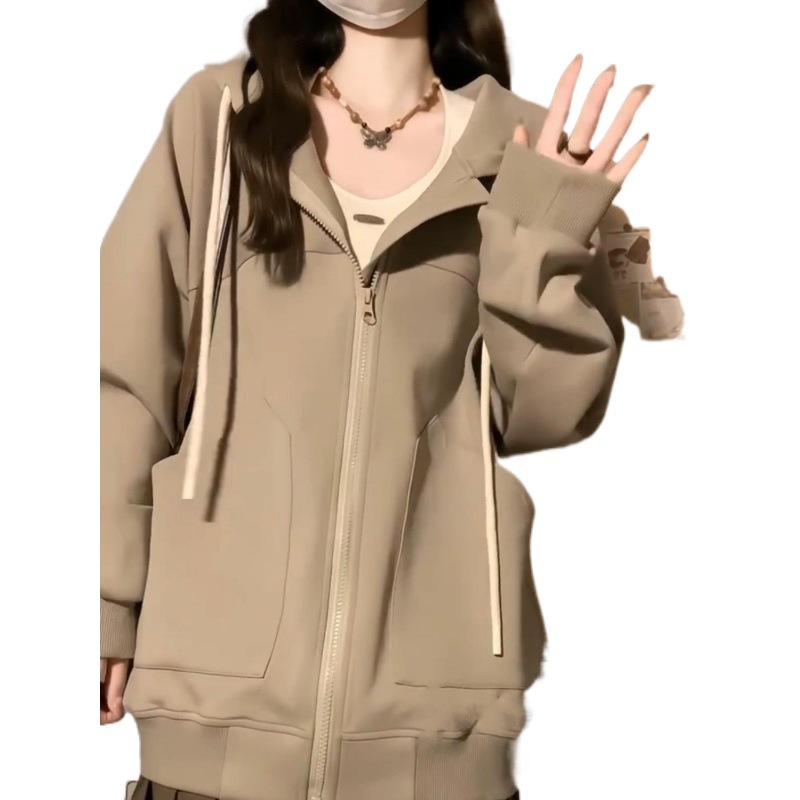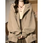 American Style Retro College Style Hooded Sweater Women’s Spring and Autumn INS Korean Style Student Loose All-match Cardigan Lazy Jacket