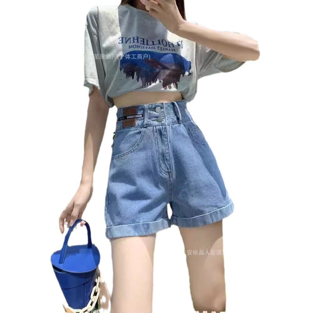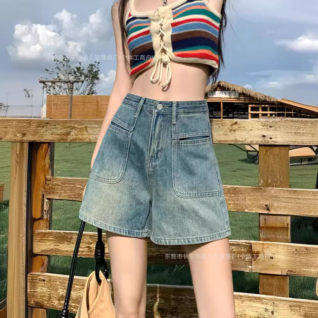 | nameOriginal | American Style Retro Denim Shorts Women's High Waist Loose Slimming Spice Girls Fashion Trendy Design All-match Straight Shorts |