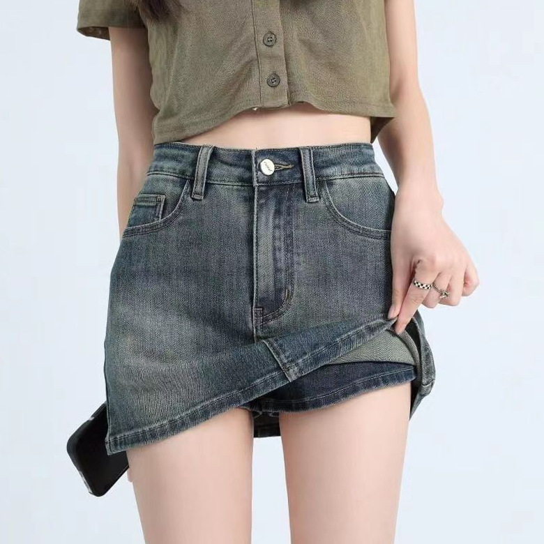 | nameOriginal | American Style Retro Denim Skirt Small High Waist Stretch A- Line Skirt Hot Girl Anti-walking Hip Skirt Summer New Arrival Skirt |