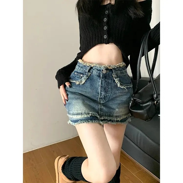 | nameOriginal | American Style Retro Denim Skirt Women's Summer New Hot Girl Hip Skirt A- line Trendy Short Skirt |
