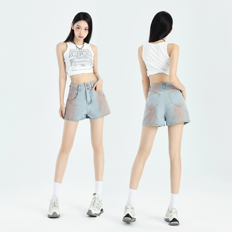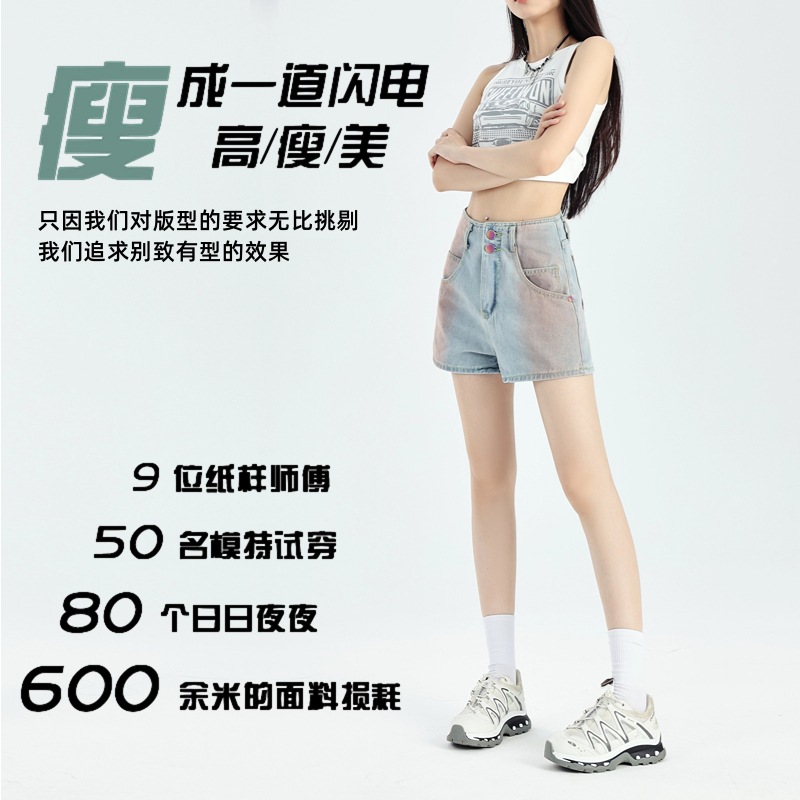 | nameOriginal | American Style Retro Design Sense Sniffing Denim Shorts Women's 2024 Summer New Retro High Waist Loose Slimming Wide Leg Pants |